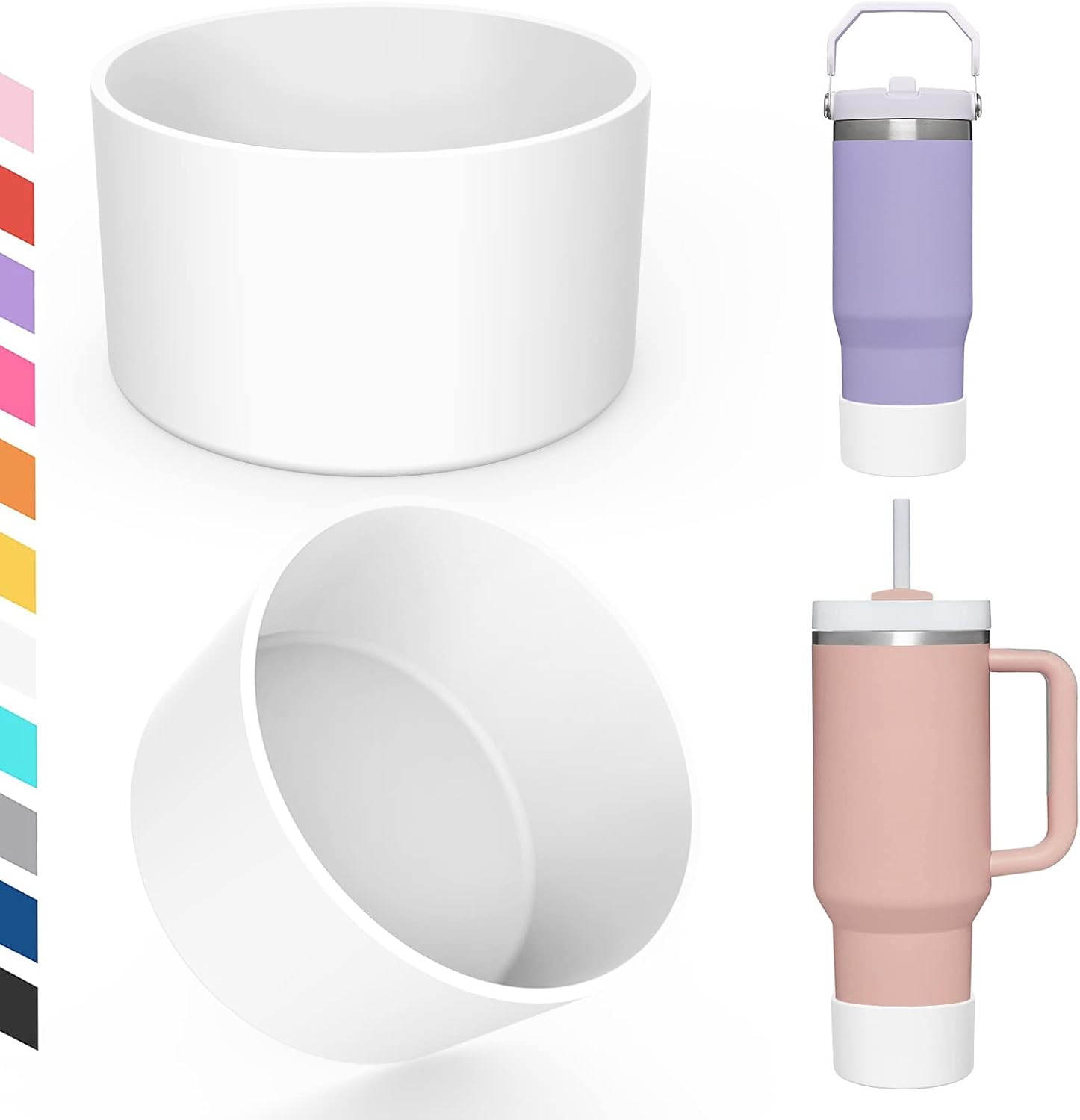 Upgrade 2PCS Protective Silicone Boot Bumper for Stanley Quencher Adventure 40oz 30oz IceFlow 20oz 30oz Tumbler, Water Bottle Bottom Sleeve Cover Accessories for Stanley Mug Cup(White)