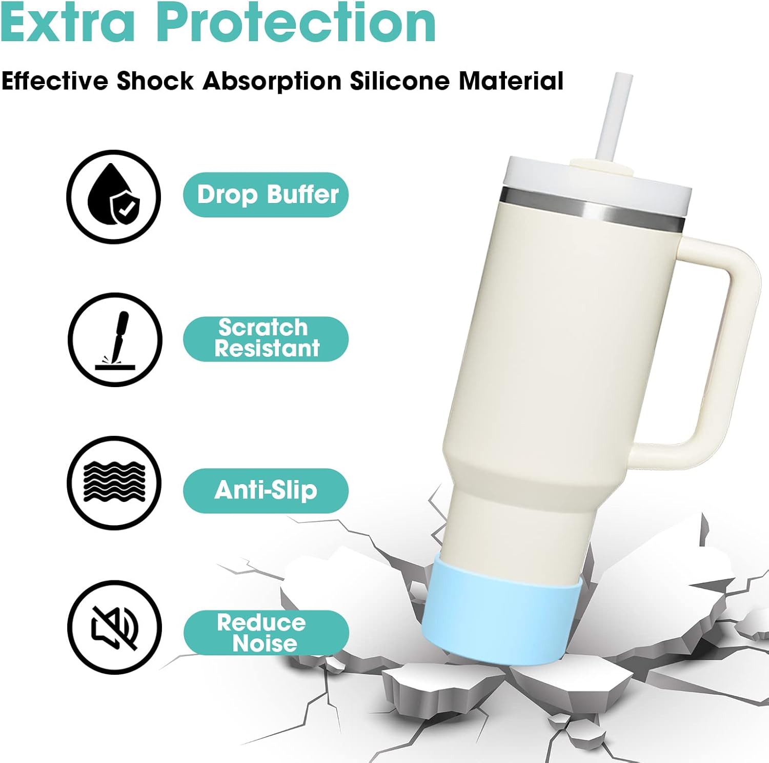 - 【Excellent Protection】Still worried about broken, scratched bottoms of your favorite stainless steel water bottles? Or embarrassed by the clinking sound the bottle makes on the table? This silicone sleeve for Stanley can effectively protect the bottom of the bottle from depression, scratch, skid resistance and noise.