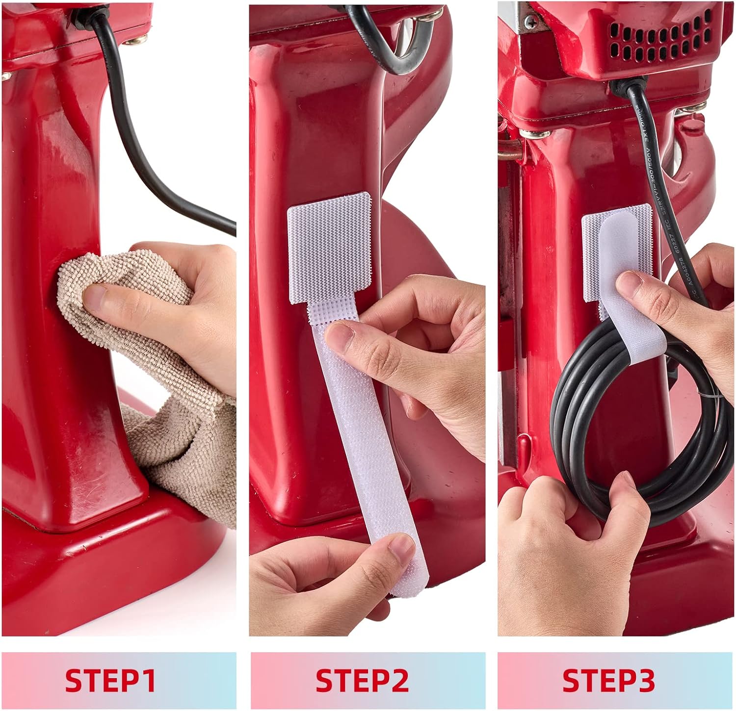 - Easy To Install And Removes Cleanly: The cord organizer for kitchen appliances are easy to install and can be removed without leaving glue. Just do simple cleaning on the surface of the machine first, then tear off the paper at the bottom to stick it. Note: In order to be firmly fixed, please wait for 12 hours before using it