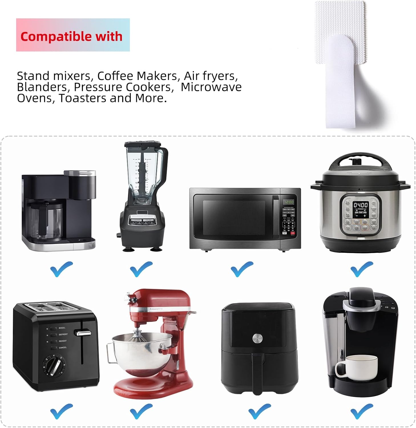- Strong Applicability: The SUITMAT cord holder has no requirements for the thickness and length of the wires. Suitable for a variety of small appliances, such as kitchenAid mixer, air fryer, coffee machine, pressure cooker, microwave oven, blender, juicer, etc
