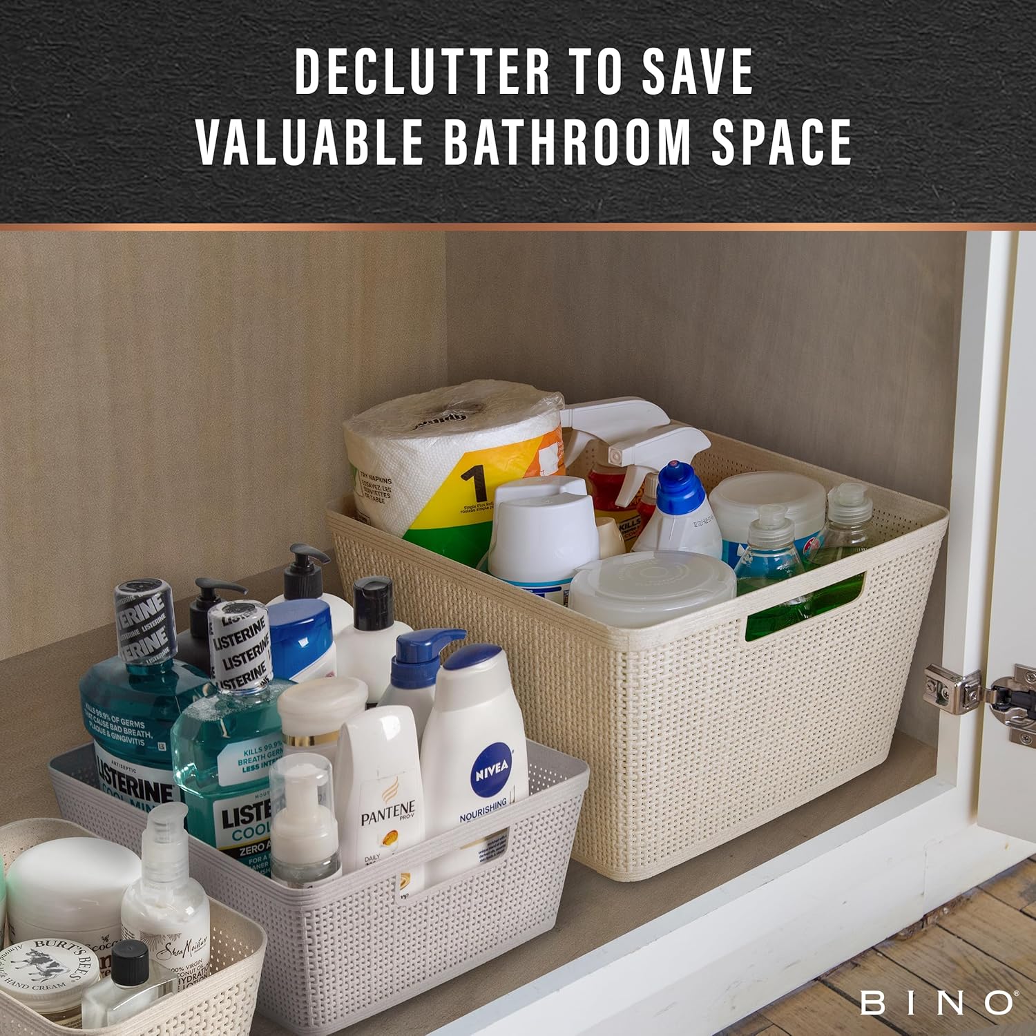 - Stylish and Functional Organization: Elevate your home organization with our multi-purpose woven plastic storage bin. Ideal for under-sink, pantry, or cabinet storage, it's available in various sizes and classic colors ( to complement any decor effortlessly.