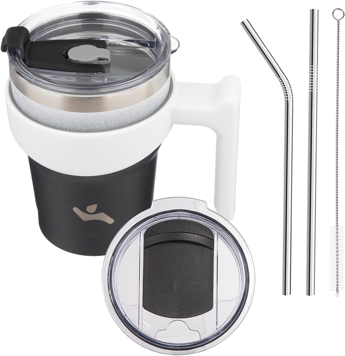 - Designed with a tapered shape and slim-base,the tumbler easily fit in most cup holders. Detachable handle gives versatility to adjust your grip according to your preference or remove it entirely for added flexibility