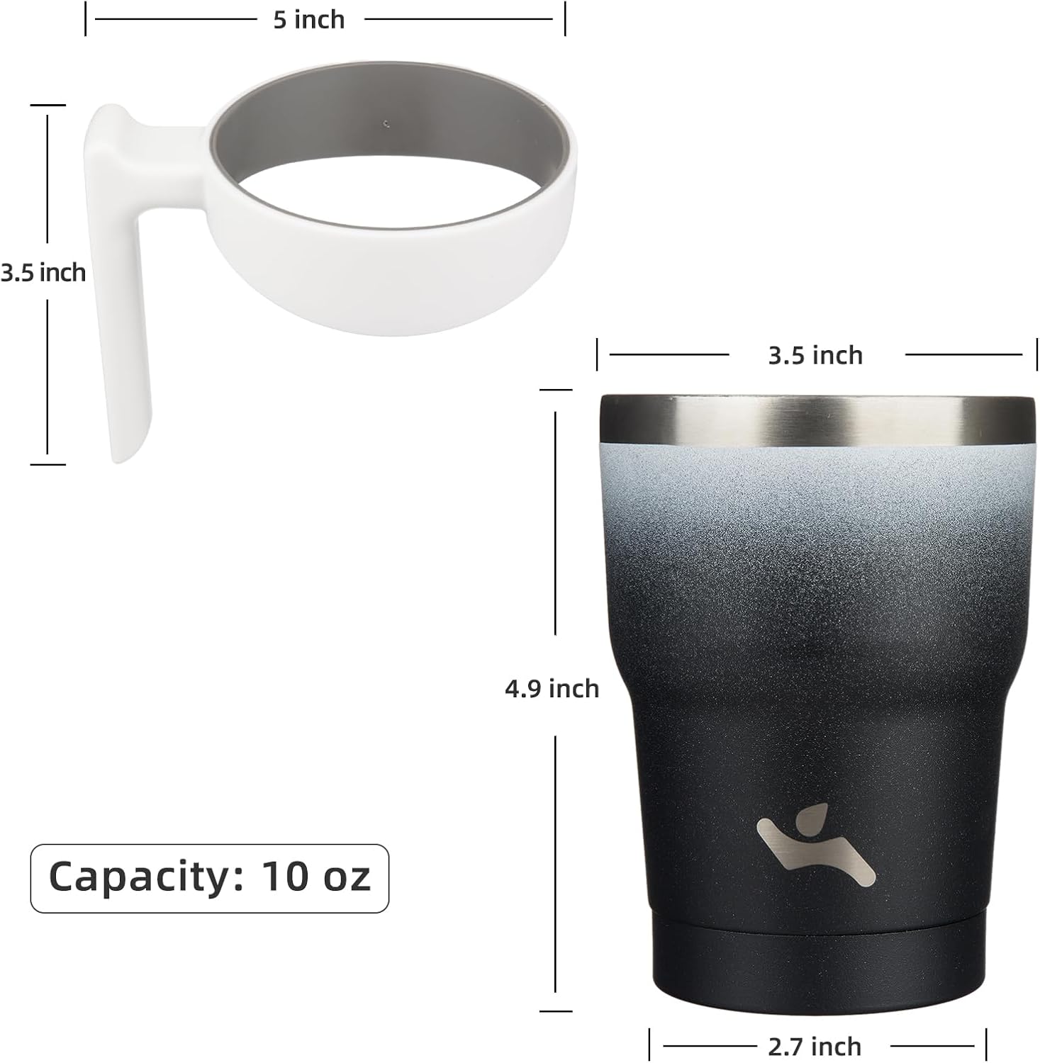 - Material Insulated, Metal, Stainless Steel : Capacity 10 Fluid Ounces