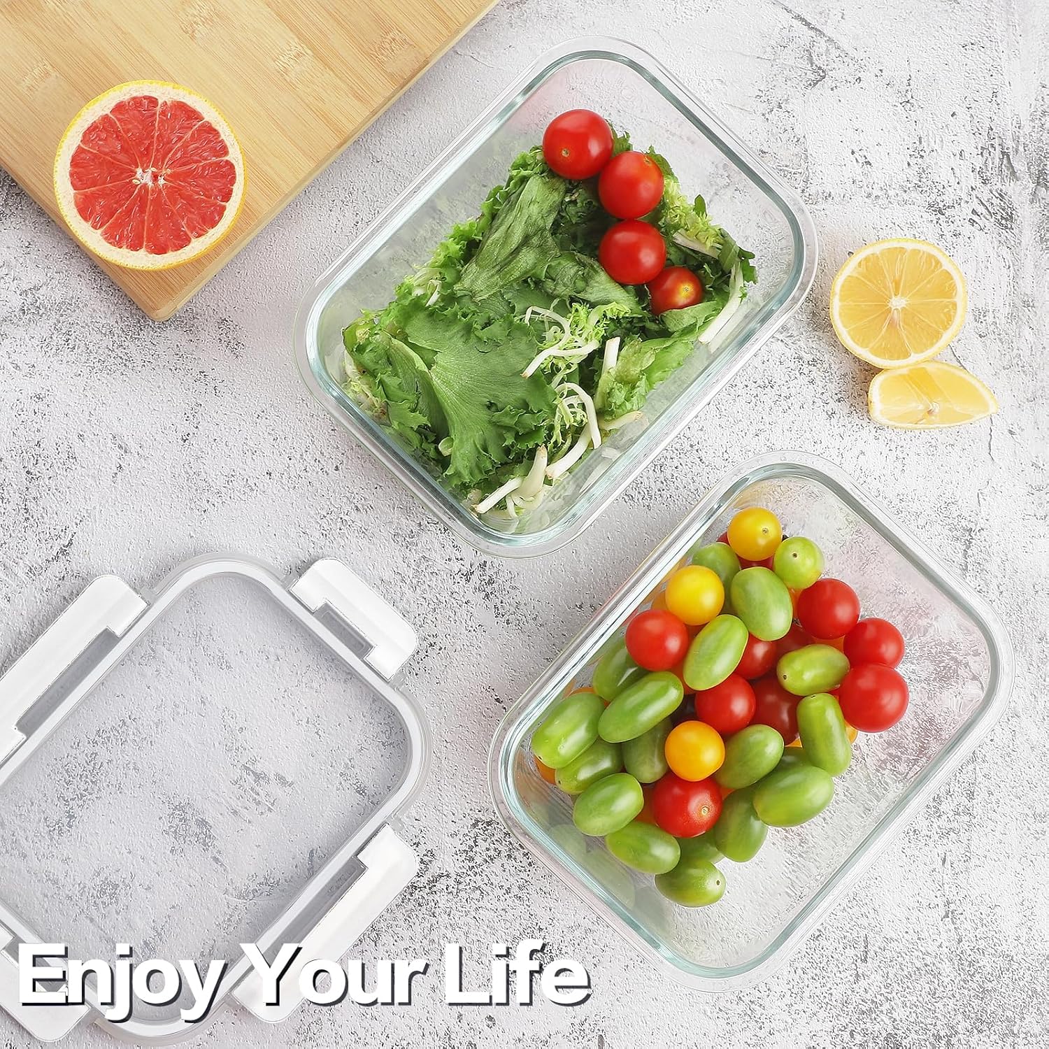 10 Pack Borosilicate Glass Meal Prep Containers with Locking Lids, Glass Food Storage Containers Set, Airtight Lunch Bento Boxes, BPA-Free & Leak Proof, 36oz & 14oz, Freezer, Oven Safe-White