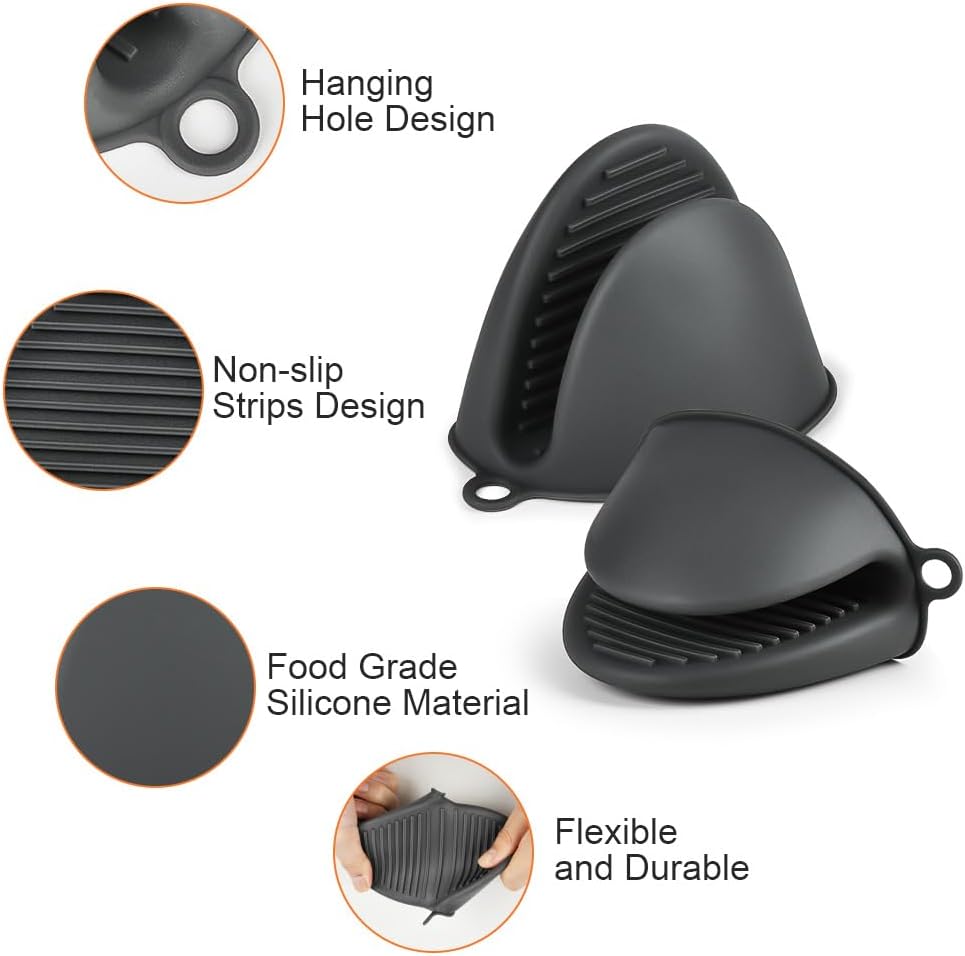 AUAUY 1 Pair Mini Silicone Oven Mitts, Heat Resistant Pot Holders Mitts, Cute Oven Pinch Grip Gloves, Small Potholders for Kitchen, Air Fryer Mitts Pair for Cooking, Baking and Grilling (Grey)