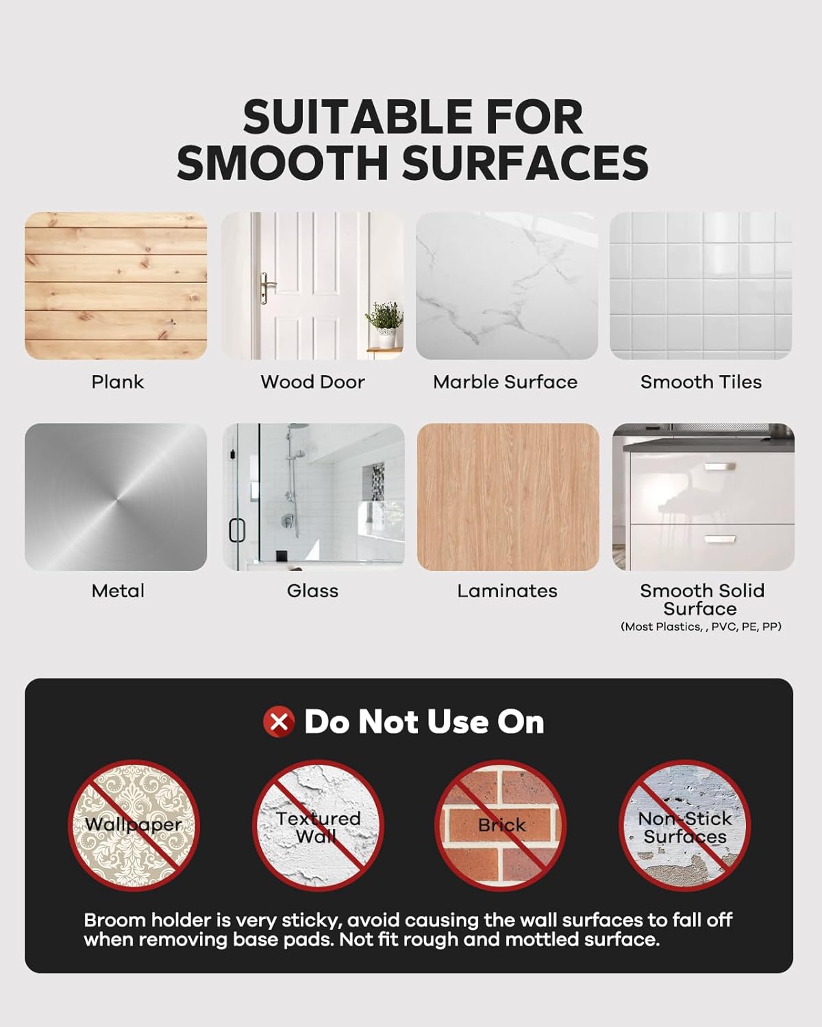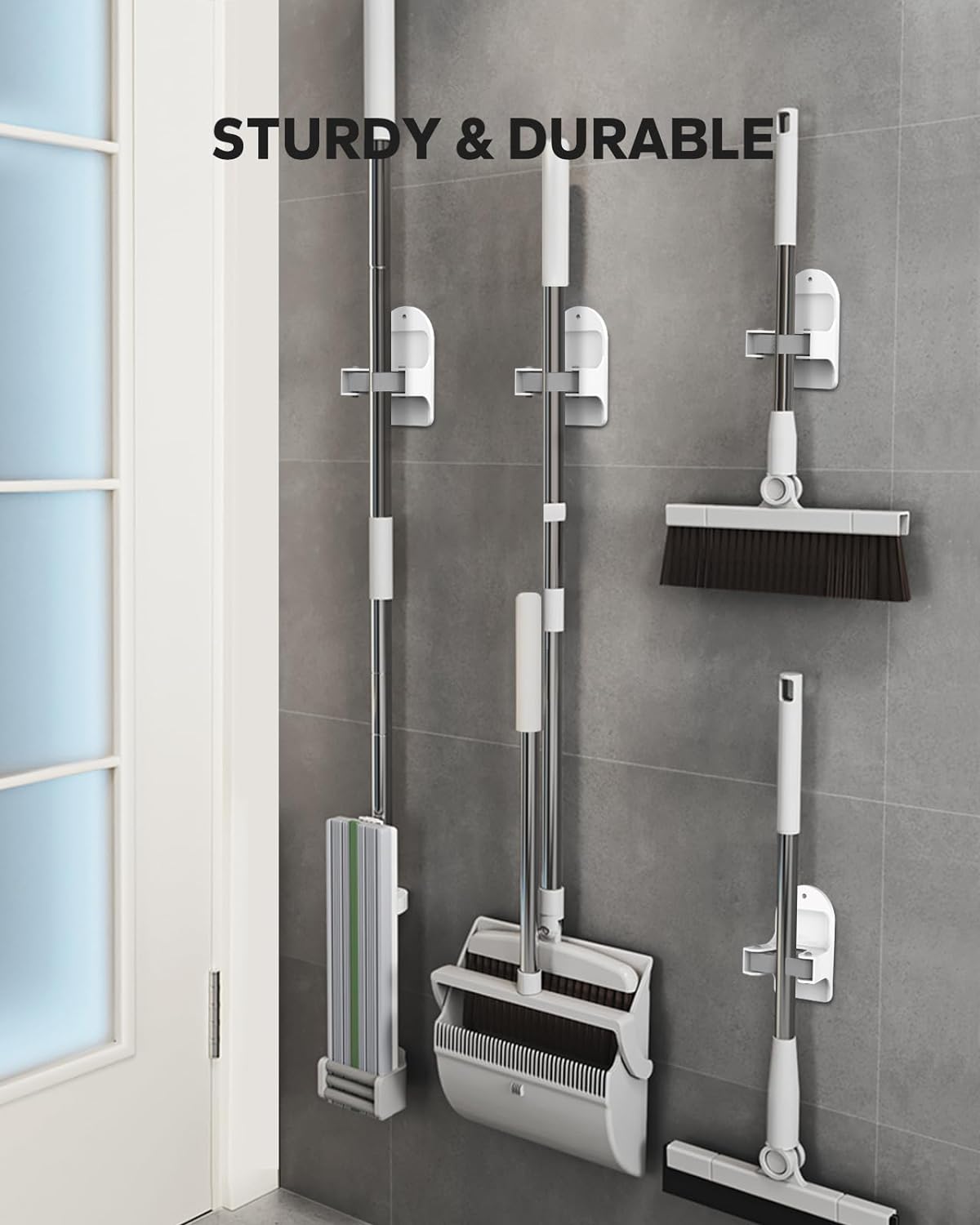 - Waterproof Non-slip - You don't have to worry about the broom and dustpan hanger being stained with water or falling off, it can operate efficiently for a long time.
