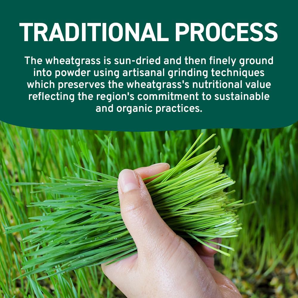 - PREMIUM & VIBRANT WHEATGRASS POWDER - Our Wheatgrass powder is a versatile spice obtained from the pure vibrant green leaves of the wheat plant, Triticum aestivum. These leaves are carefully processed into a fine powder, making it a convenient and easy-to-use ingredient. Due to its distinctive flavor and rich nutritional composition, wheatgrass powder finds widespread use in both culinary and dietary applications.