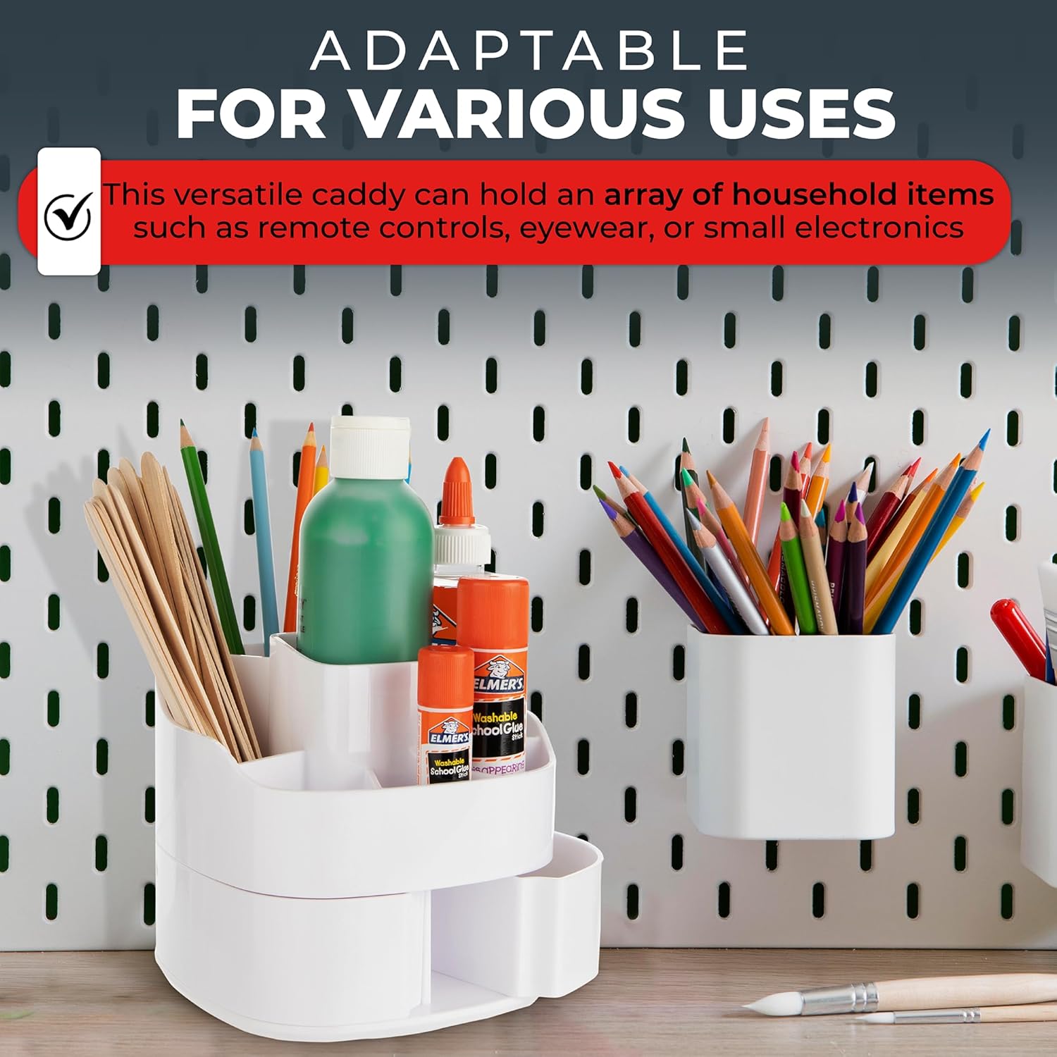 - MULTI-PURPOSE VERSATILITY: More than just a mini makeup organizer, this versatile caddy is perfect for holding a wide range of household items, such as TV remotes and eyeglasses, thanks to its sleek design and convenient compartments.