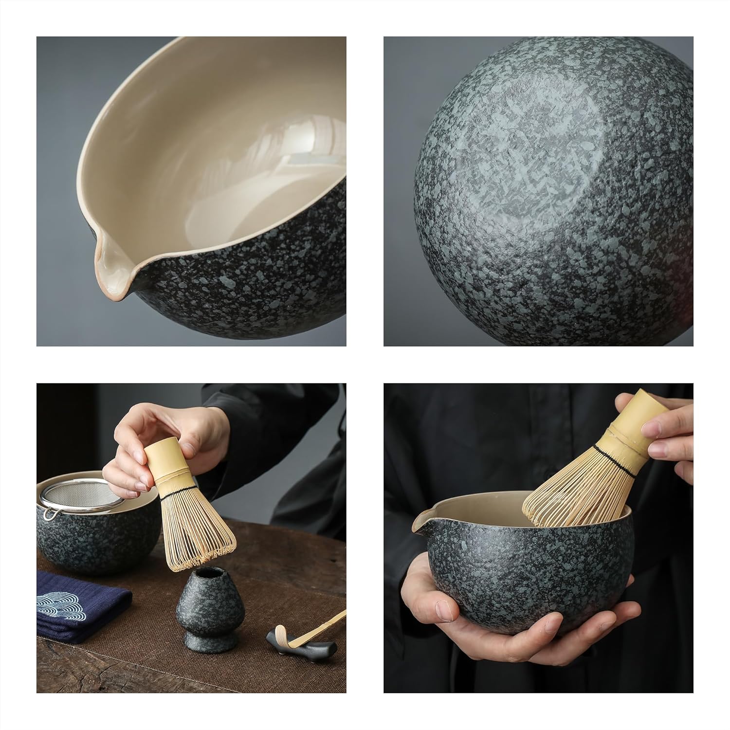 - MATCHA BOWL UNIQUE DESIGN: Special Pouring Mouth Design, Easy for Sharing Matcha with Friends and Family.Same Color for Matcha Bowls & Whisk Holder, Higher Sense of Ceremony