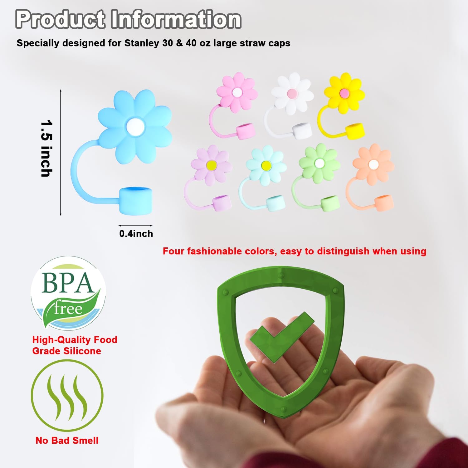 Straw Covers Cap Fit for Stanley Cup, 8Pcs Silicone Flower Straw Toppers Compatible for Stanley 30&40 Oz Tumbler, 10mm Drinking Straw Tip Covers Fit for Stanley Cups Accessories