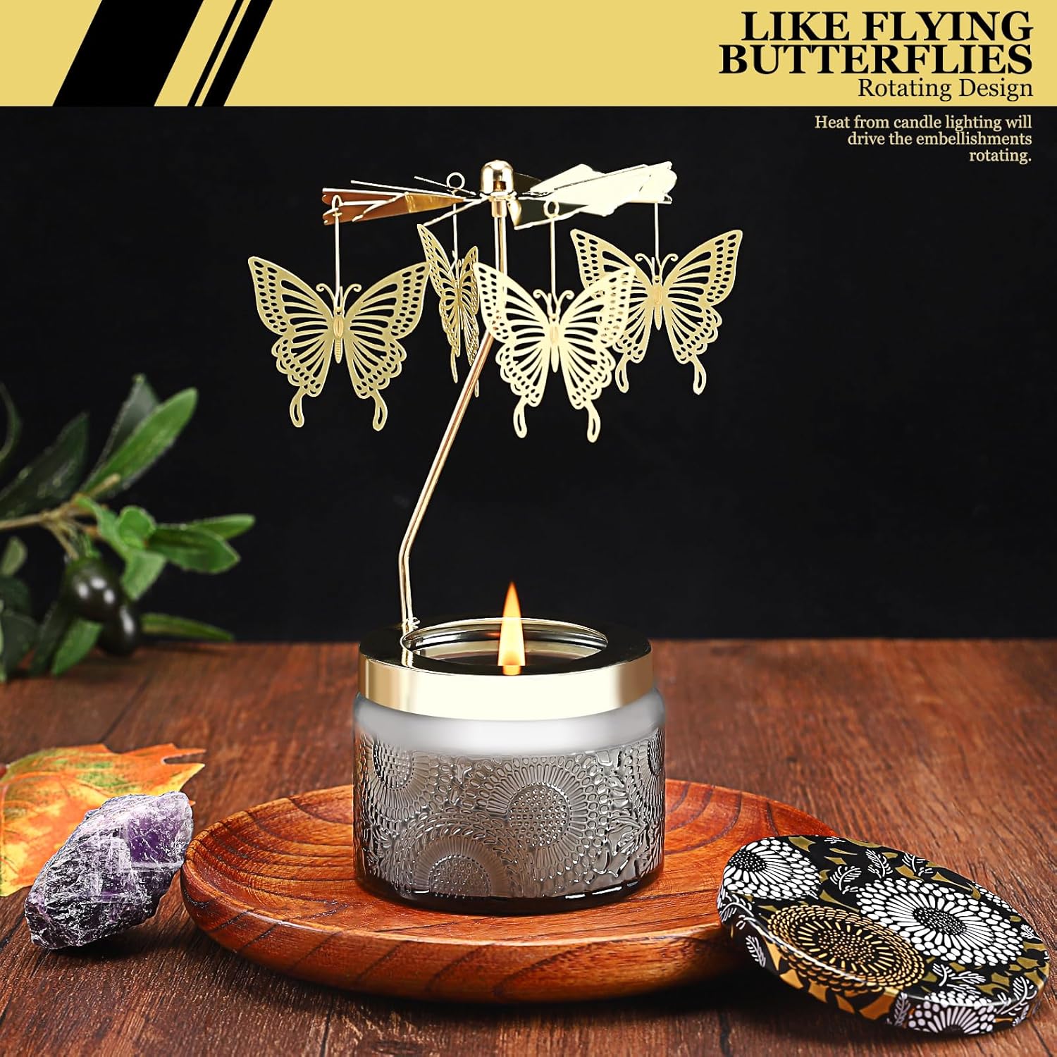 - Perfect Match for Any Occasion: Our candle is made by natural soy wax and cotton wick, which makes it burns evenly. With a 4 oz capacity, this candle can burn for up to 25 hours. Place them as focal points on dining tables, mantles, with their unique ability to rotate and create a captivating display, they effortlessly add a touch of elegance and sophistication to any decor