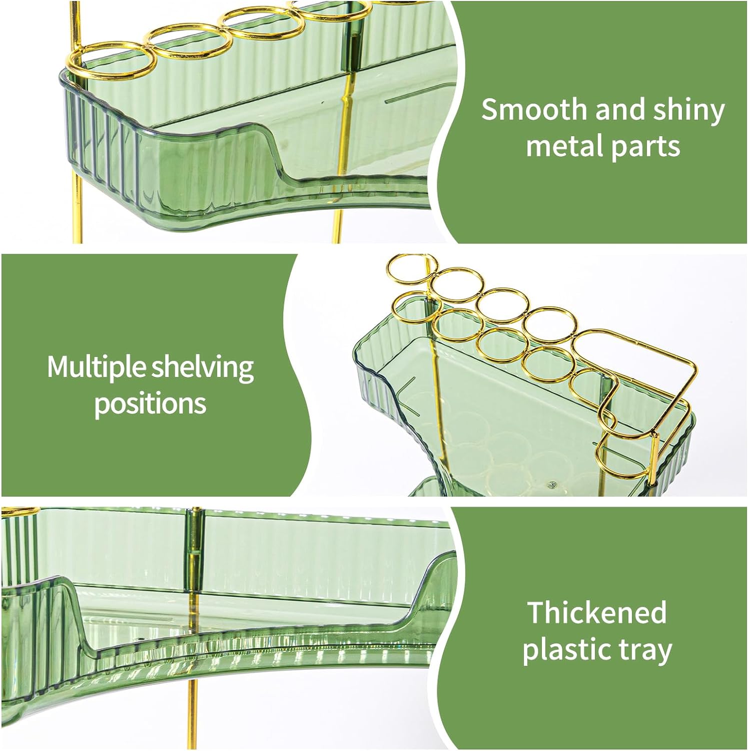 - 【Decorative Perfume Organizer】Golden rod and gem green trays will definitely catch your eyes at a glance. Get this beautiful display shelf for your beloved perfumes, skincares, and cosmetics