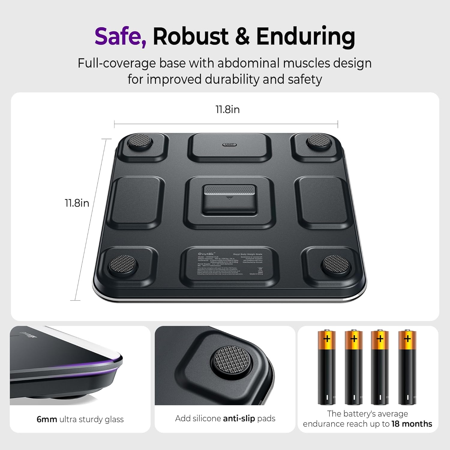 - Safe and Durable: Designed with full-coverage base and 6mm tempered glass, the scale is sturdy and durable which is safe for the elderly and children. Also, the 4*AAA batteries included can long last for 18 months