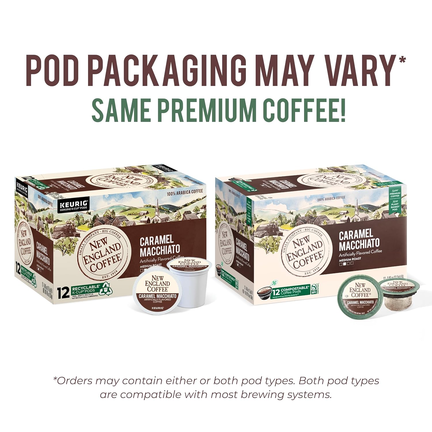 New England Coffee Caramel Macchiato Medium Roast Single Serve Pods, 12ct Box (Pack of 1)