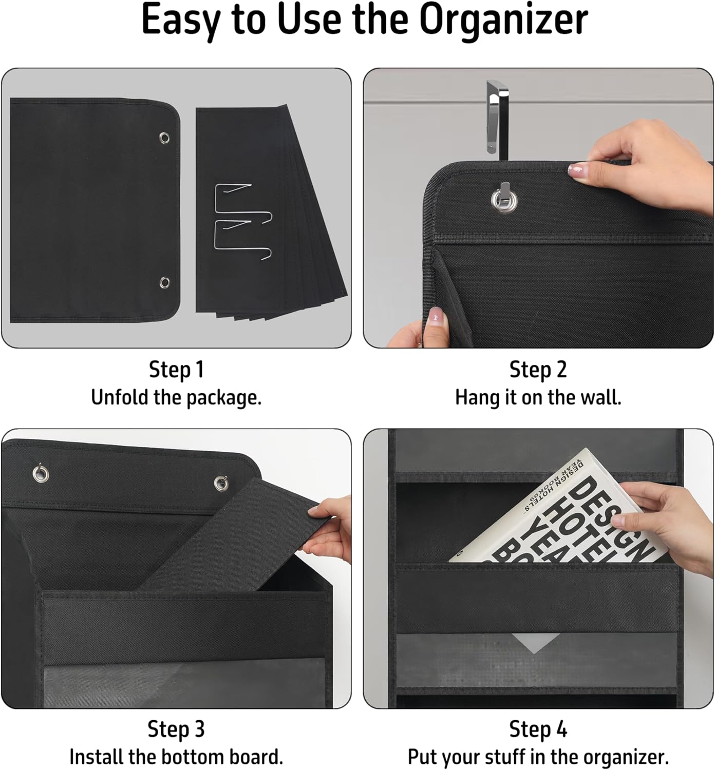 - EFFORTLESS INSTALLATION - No need for tools or hardware; simply utilize the adjustable metal hook to hang the organizer over most doors. Enjoy a hassle-free installation process that takes the stress out of organizing your space.