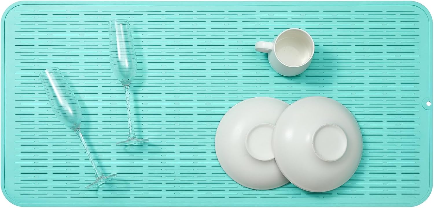 Silicone Dish Drying Mat for Multiple Usage,Easy clean,Eco-friendly,Heat-resistant Silicone Mat for Kitchen Counter or Sink,Refrigerator or Drawer Liner Mint 5XL 36inches x 18inches