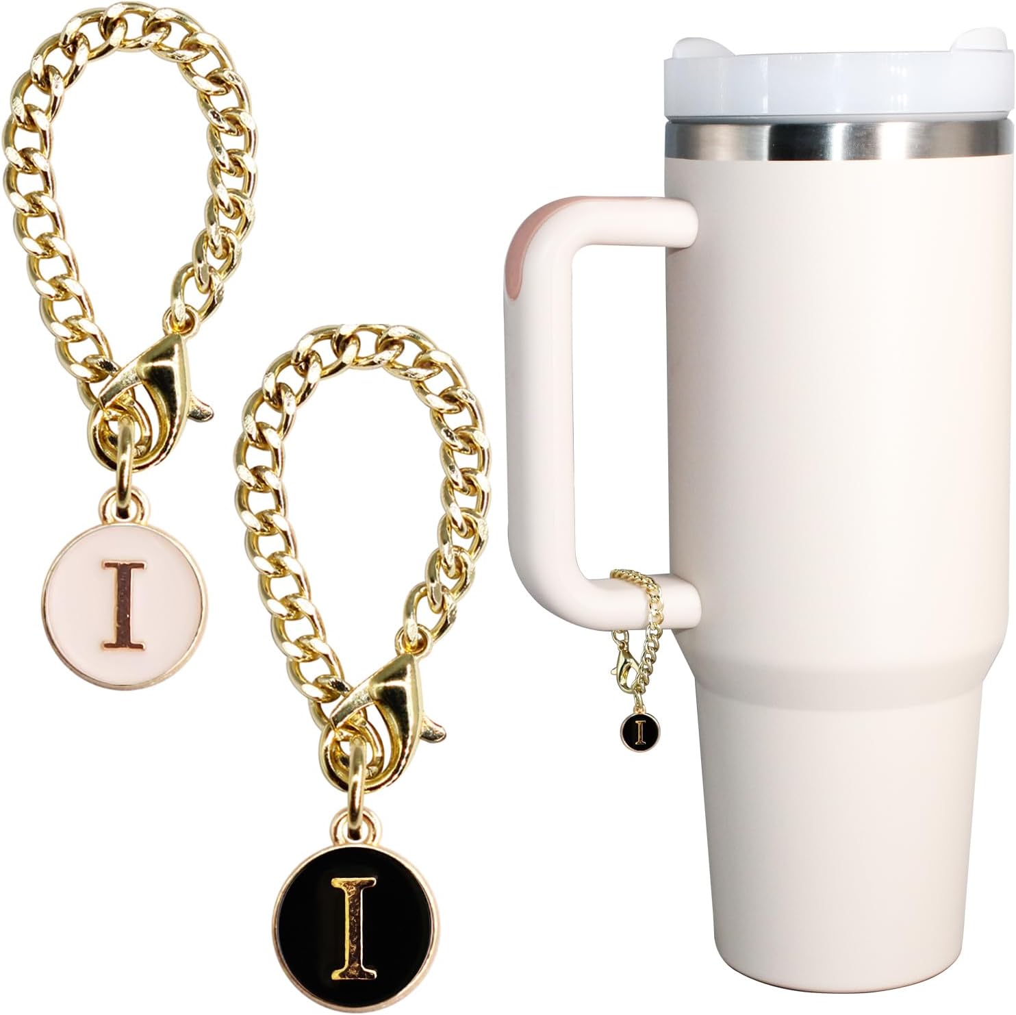 - Each package includes 2pcs chains with letter charms for Stanley tumblers. The total length of the letter charm chain is 4.5" long.