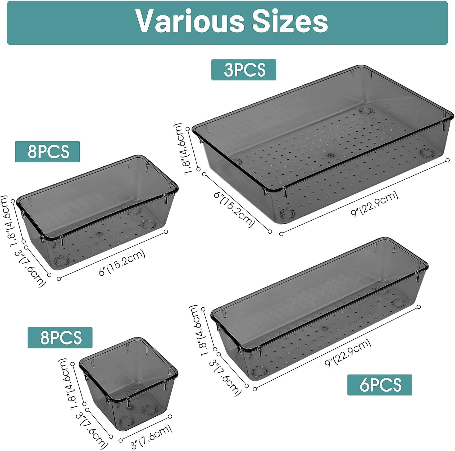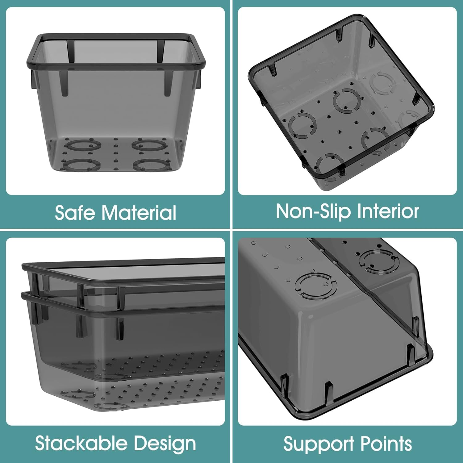 - Long Lasting and Non-Slip: The plastic has 3-5 times the impact strength of other materials and is robust and long lasting. The bottom of the storage organizers has a non-slip design to prevent the tray from moving around when the drawer is used
