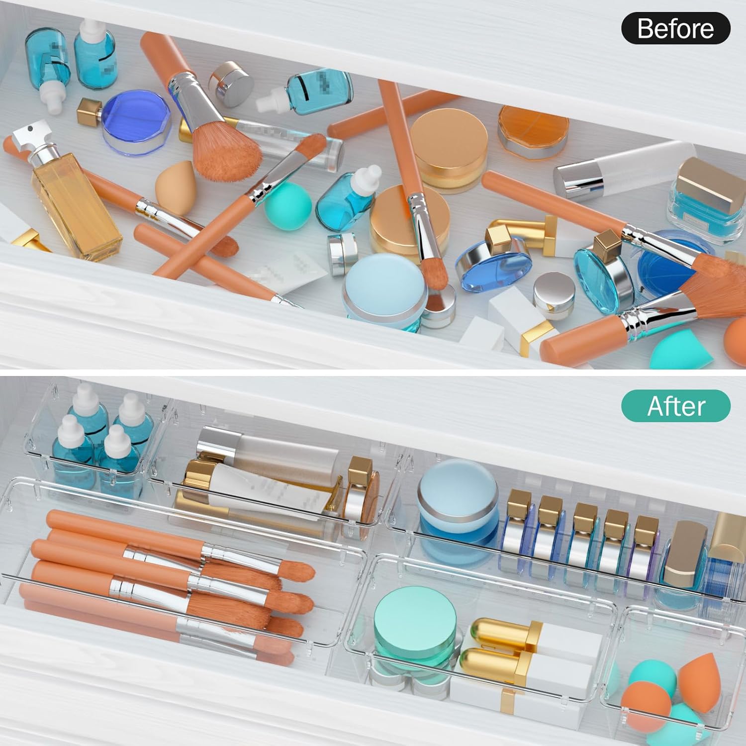 WOWBOX 12 Pack Clear Drawer Organizer Set, Acrylic Drawer Storage Trays, Storage Bins for Makeup, Cosmetics, Jewelries, Utensils, Gadgets, Office