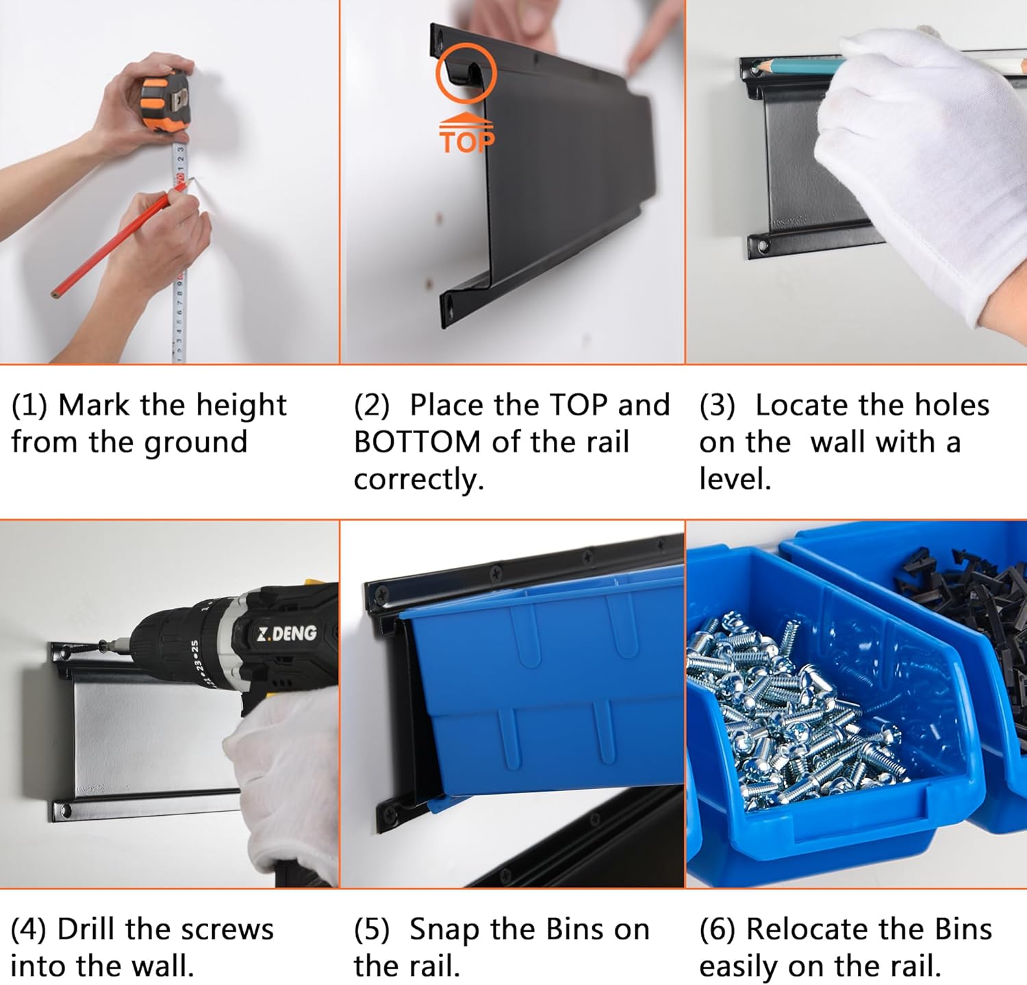 - EASY TO INSTALL - With 2 rails mounted on the wall, the bins can snap on the rails easily.