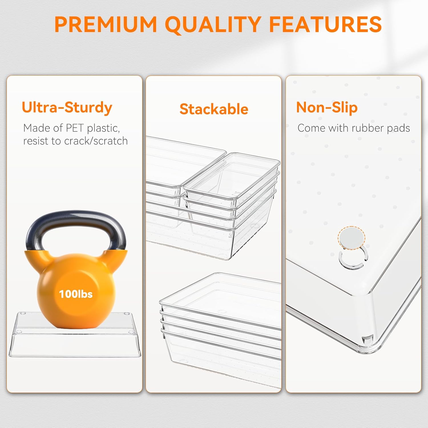 - Material : BPA-Free Clear Plastic Drawer Organizer Set