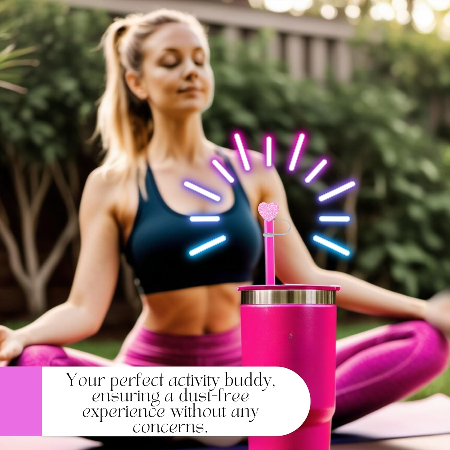 4 PCS Silicone Straw Covers Cap Compatible with Stanley Tumbler, pack of 10mm Cute Heart Straw Toppers for Tumblers Dust-Proof Drinking Straw Caps for Reusable Straws Tips Lids