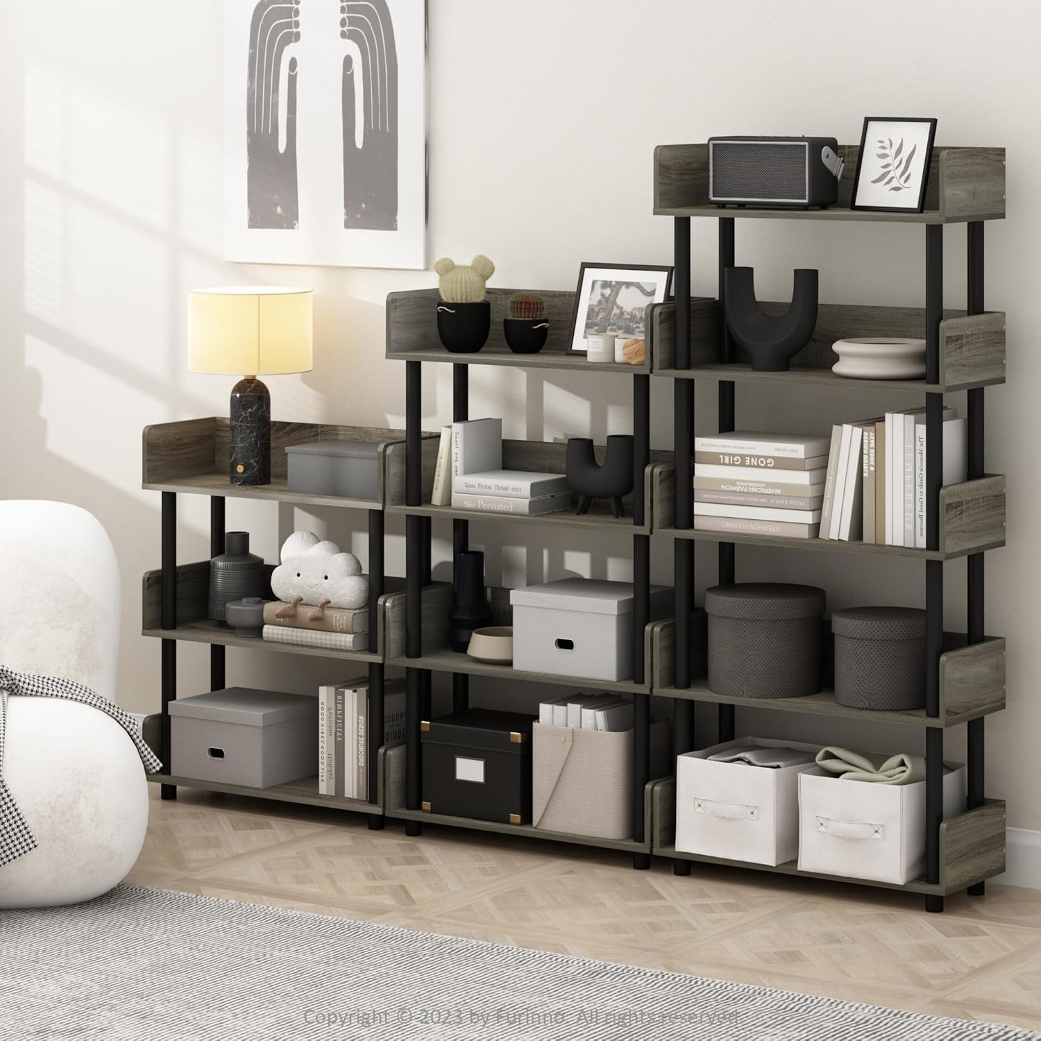 Furinno Turn-N-Tube 5-Tier Toolless Display Rack, French Oak/Black