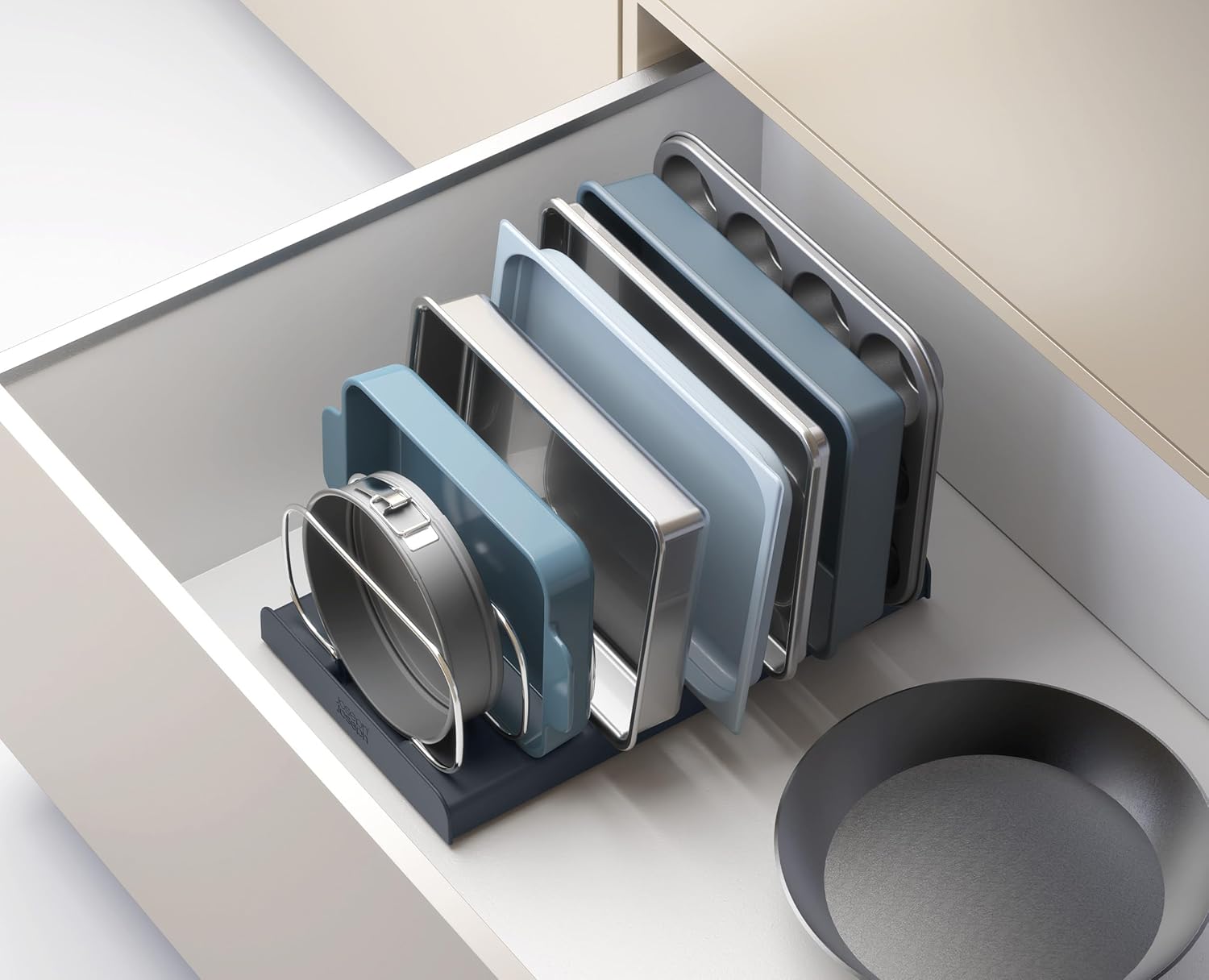 Joseph Joseph DrawerStore Cookware Organizer, Baking Tray Rack, Space Saving Storage for Pans, Lids, Cutting Boards