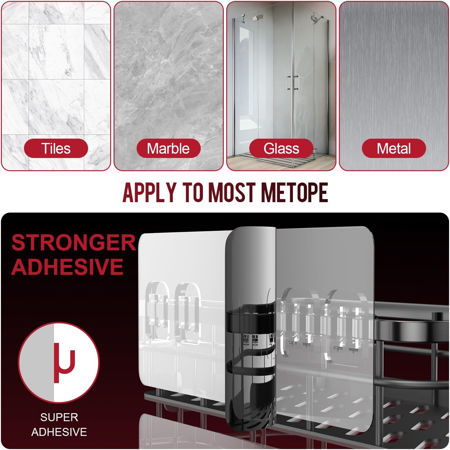 - 【Maintain Balance and Absolute Stability】- The newly upgraded 3M Clear No-Scratch Adhesive is ultra-reliable and can hold up to 50 pounds. Which is equal to 22 bottles of 35oz shampoo/ shower gel/ body lotion weight. Keep the tins and bottles in the bathroom shelf organizers, and make them easy to fetch and use. Never worry about falling issues after proper installation