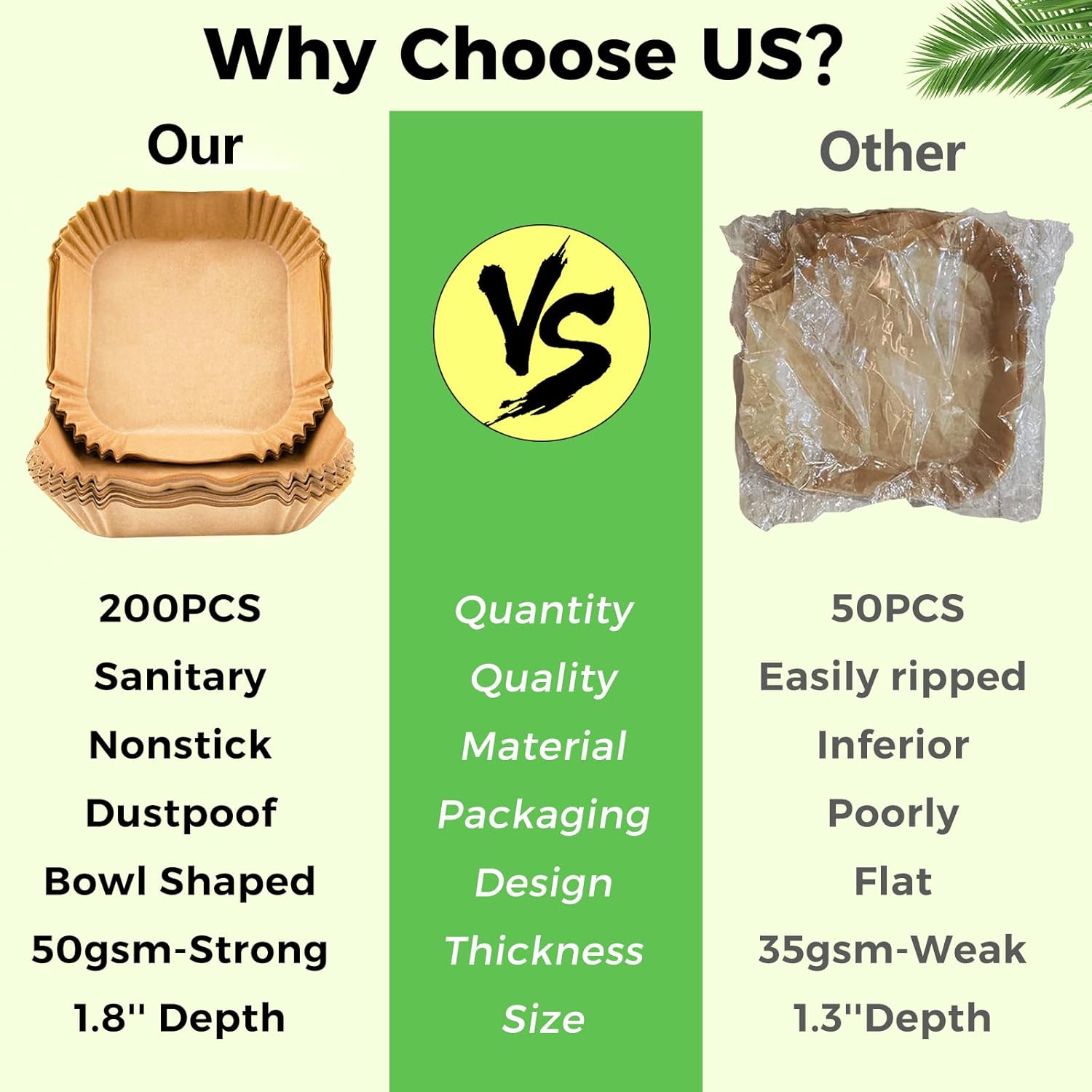 • Widely Used: These disposable air fryer parchment liners are great for baking, roasting, frying or serving food, lightweight and practical. Suitable for air fryers, microwave, ovens, steamers, etc. Just throw away the parchment liners after use.