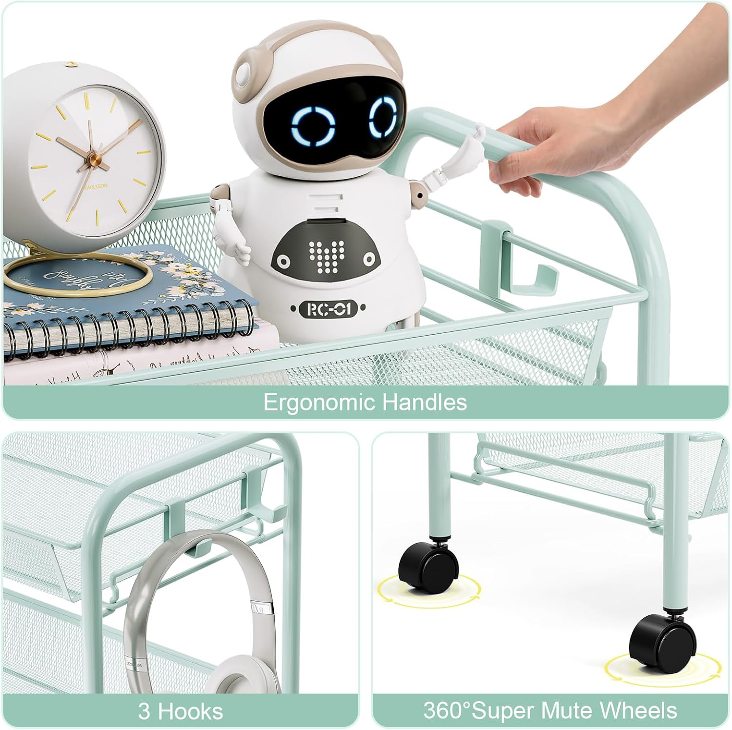 • 【Roll As A Breeze】The mobile storage trolley with 4 rubber wheels which can rotate 360 degrees and flexible, moving smoothly, super mute. U-shade handle design makes it easy to roll even with heavy loads.