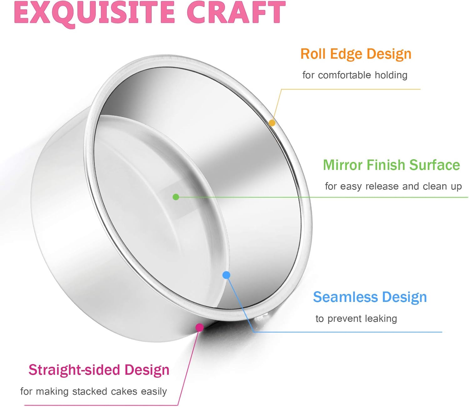 - CRAFTED - Mirror finished surface for an easy and clean release, Straight-sided design for making stacked cakes easily, Rolled edge helps with comfortable holding, Evenly heated stainless steel provides your baked goods with a perfect browning
