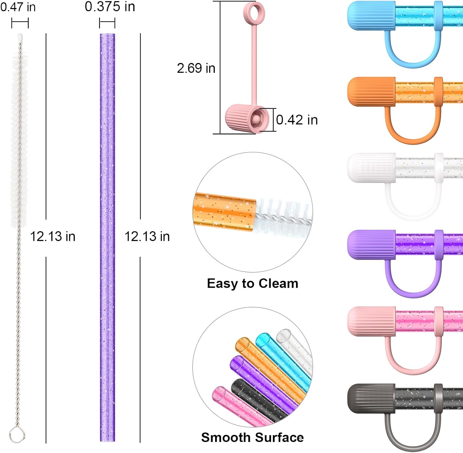 - Food-Grade Material: Each color straw and topper was made of the food-grade PCTG and silicone material, BPA-free, odorless, reusable, durable.
