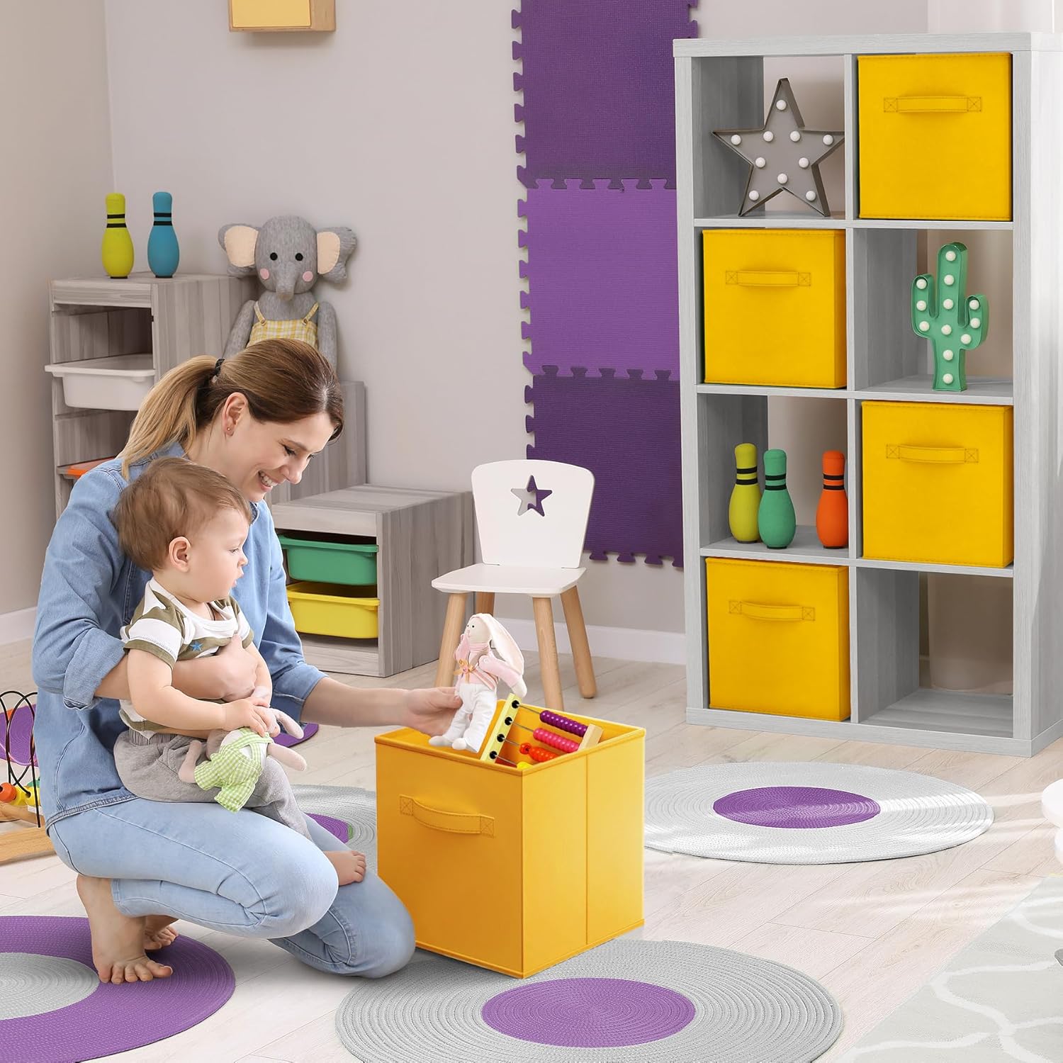 - Collapsible Storage Cubes: Save space when not in use by folding storage cube bins flat for easy organization and storage - Assemble Sorbus Storage Bins in seconds, simply pop cardboard floor into place - Features 2 sturdy handles for easy transport - Lightweight and durable