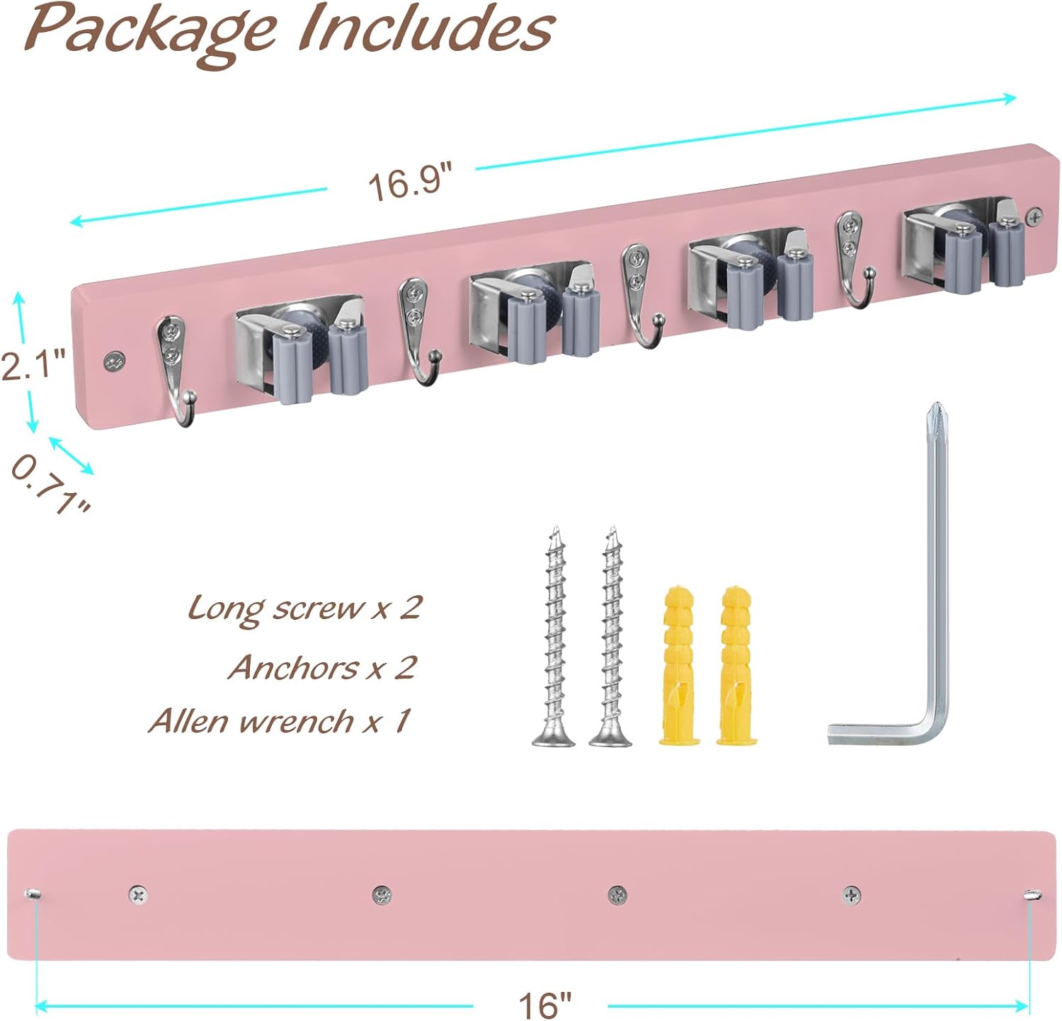 - COMPLEMENT ANY HOME DECOR - Pink wood combined with stainless steel clips create a modern country look that compliments any decor. This functional broom holder wall mount make a beautiful wall decor for your kitchen, garage, laundry room.