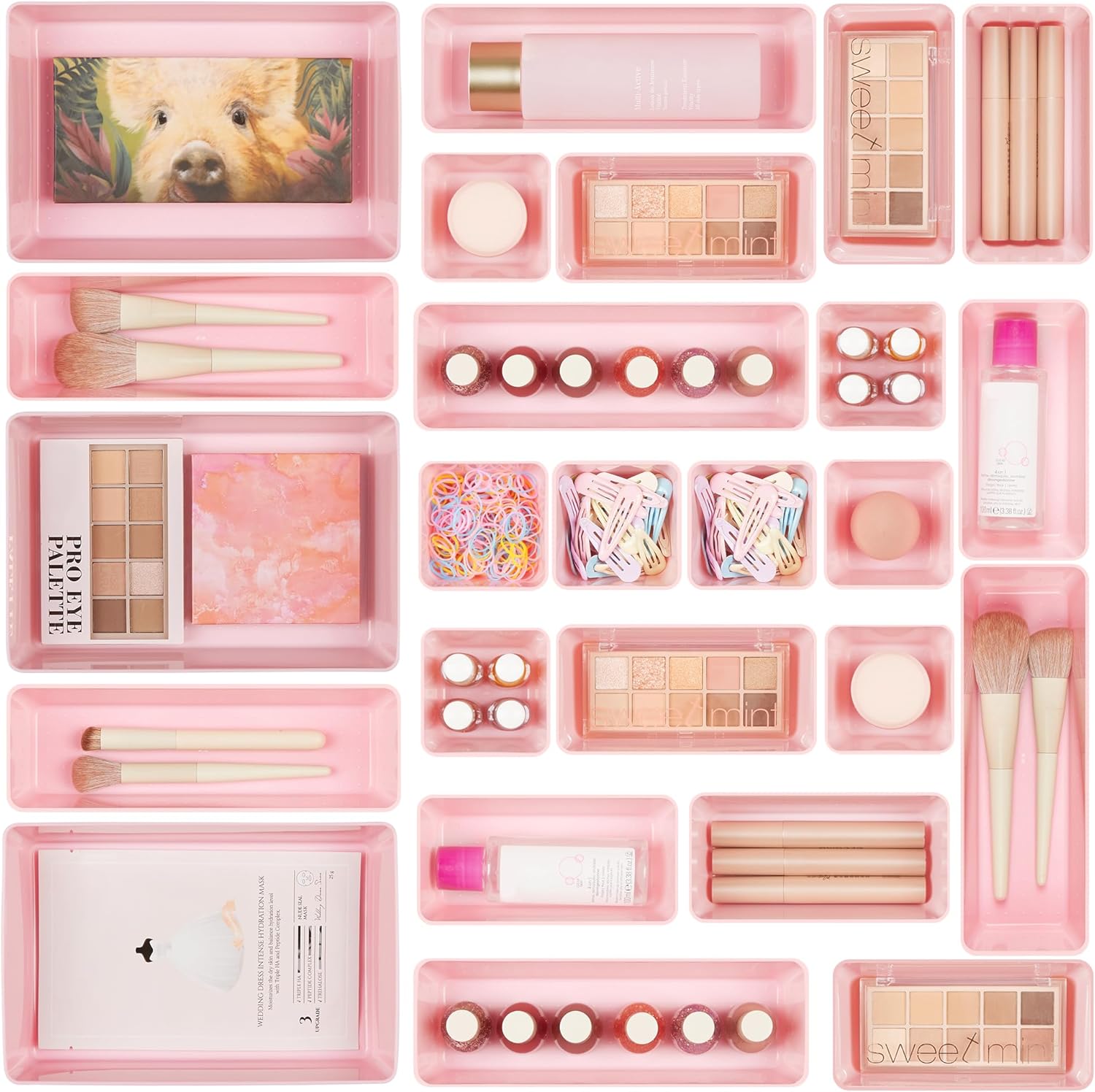 Vtopmart 25 PCS Plastic Drawer Organizers Set, 4-Size Versatile Bathroom and Vanity Drawer Organizer Trays, Storage Bins for Makeup, Bedroom, Kitchen Gadgets Utensils and Office