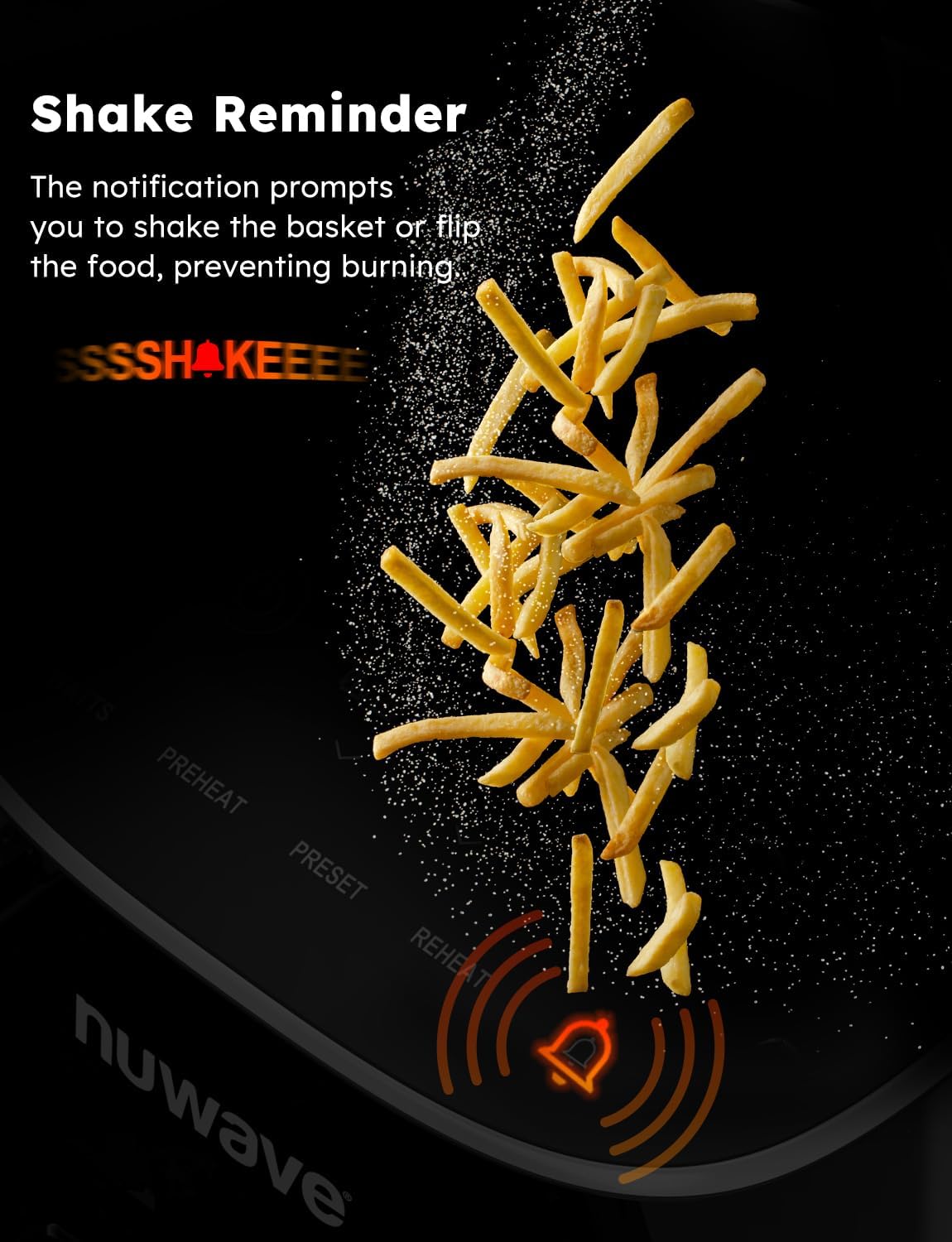 - SAFETY BUILT-IN – When the air fry basket is pulled out (opened), cooking is paused for safety. Once the basket is pushed back in (closed), the cooking resumes automatically. The air circulation riser is also redesigned to fit very securely eliminating the chance of mishaps.
