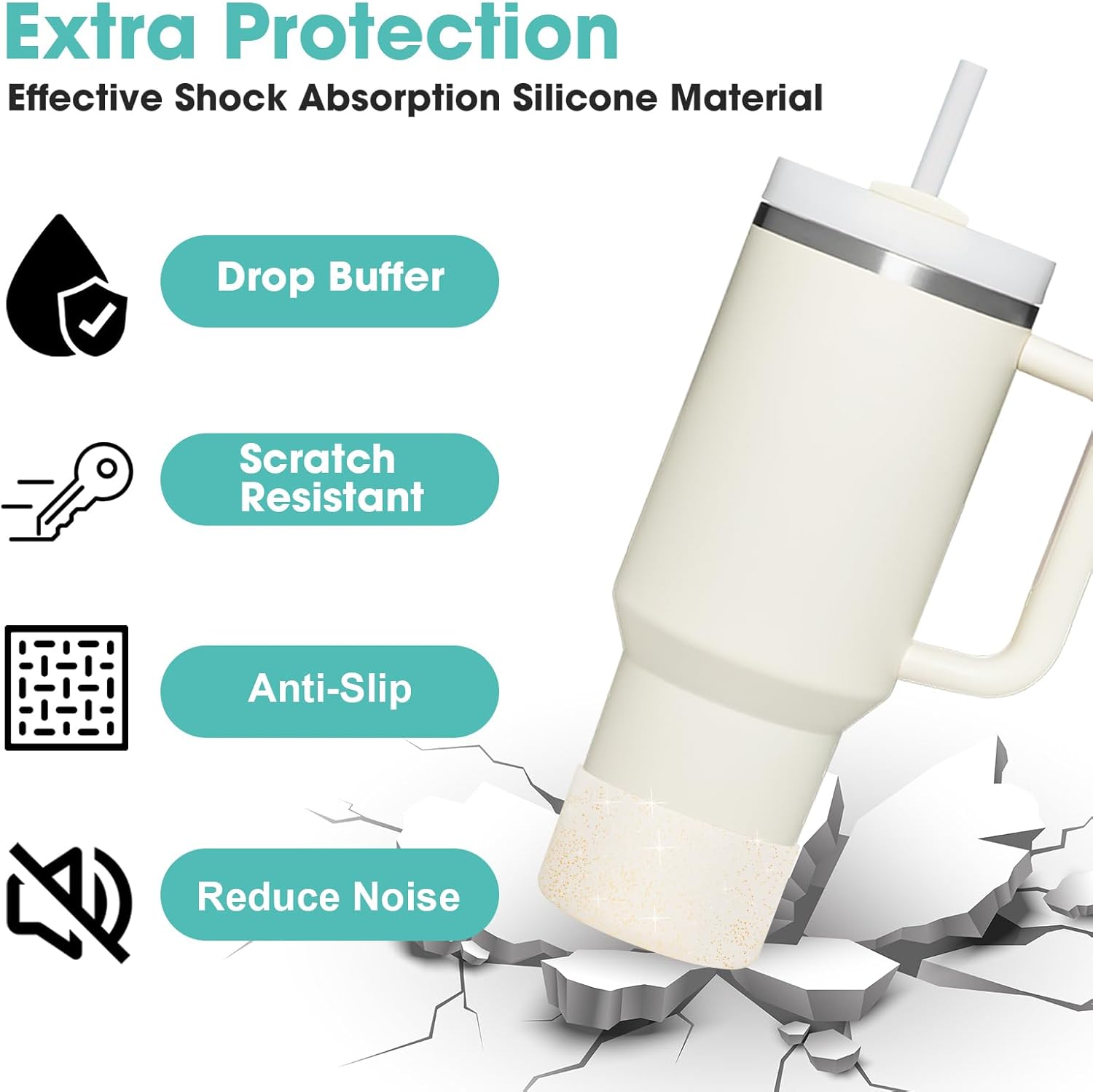 • 【Perfect Compatiblity】The silicone boot is suitable for Stanley Adventure Quencher 40oz 20oz 30oz Tumblers. It is precisely made according to the size of the original cups, which perfectly fits the cup bottom and won't fall off easily.