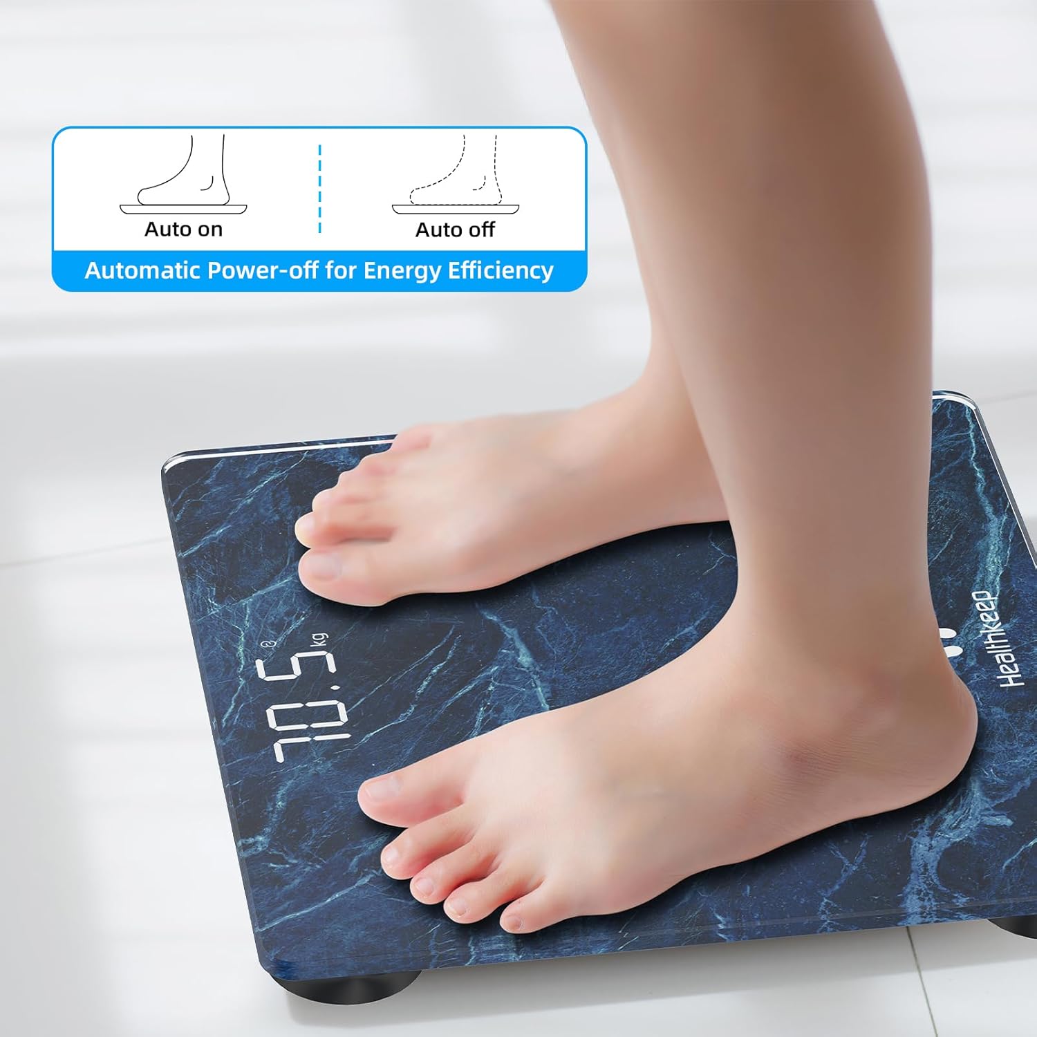 Healthkeep High Precision Digital Bathroom Scale with Step-On Technology LED Display Slim Design Max 180kg/400lb Marble Blue