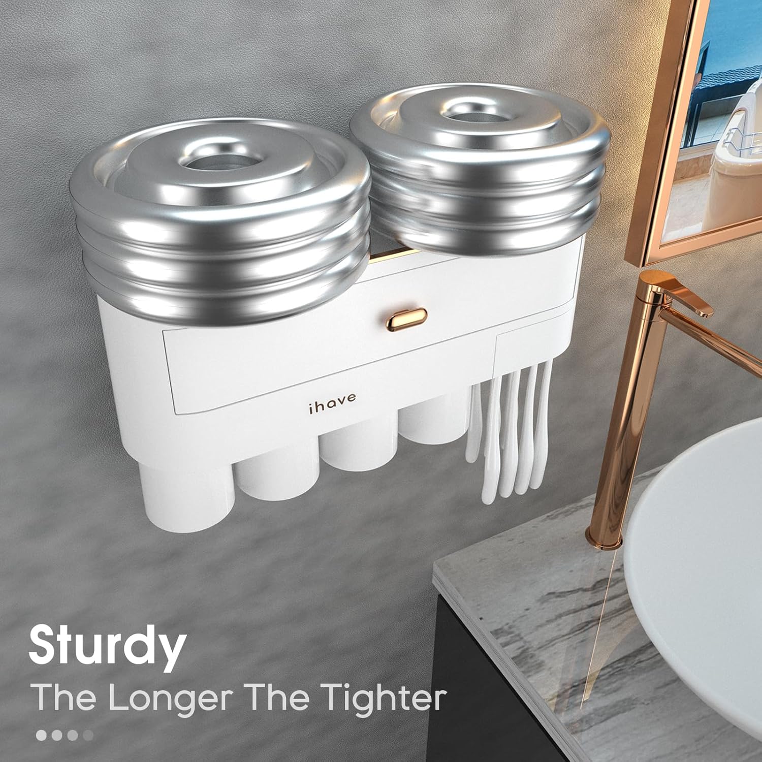 iHave Toothbrush Holders for Bathrooms - Upgrade Wall Mounted Toothbrush Holder with Toothpaste Dispenser - 4 Cups