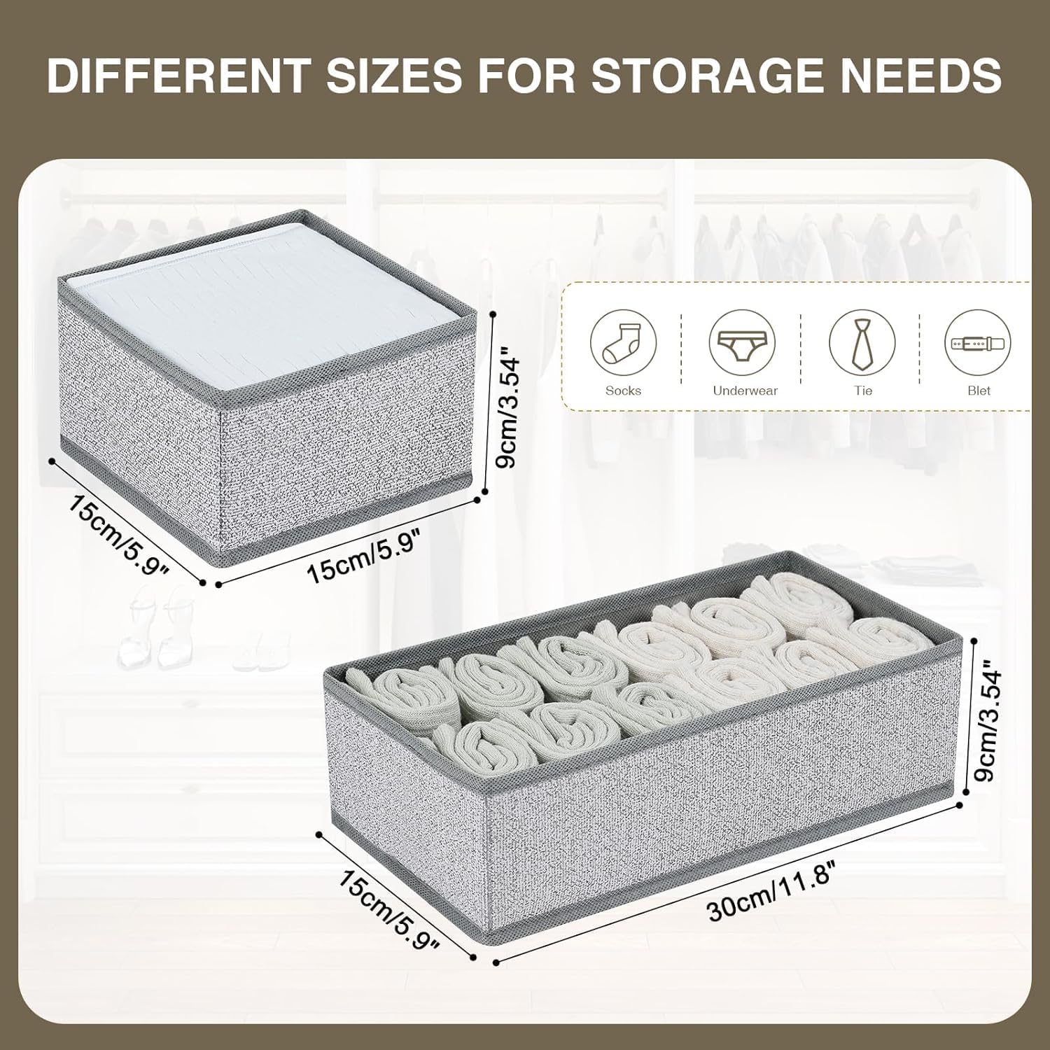 - [Multi-Size Organizer] The dresser organizers and storage choose 2 different sizes to match, you can store a variety of items, greatly improve your daily use. Medium underwear storage is 30*15*9cm (11.8*5.9*3.54") and small organizer drawers is 15*15*9cm (5.9*5.9*3.54")