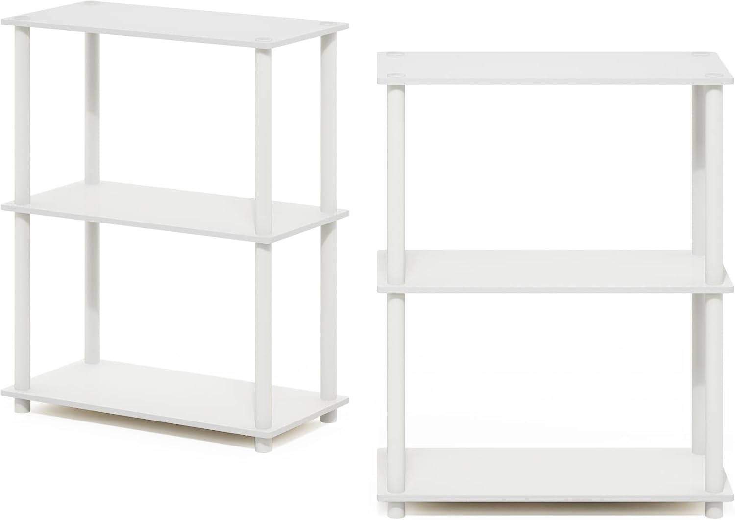 Furinno Turn-N-Tube Storage Shelves Set of 2, 3-Tier Book Shelf, Corner Shelf, Toolless Open Shelves, for Organization and Storage, Living Room, Garage, Home Office, White