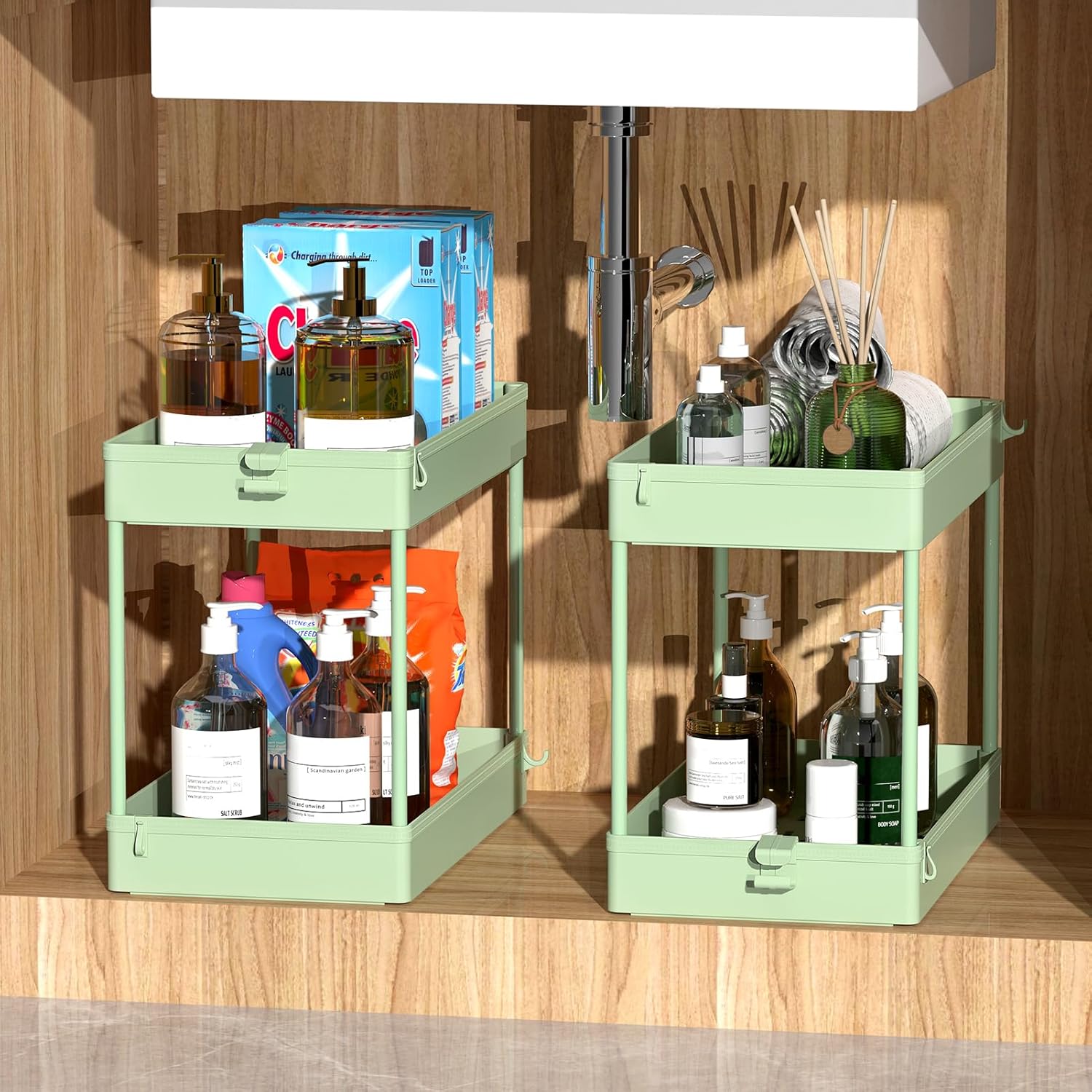 - 【Movable Storage Solution & Side Hoop】- 4 easy-glide, durable wheels make the storage cart smooth and convenient to pull in and out. And 4 side hoops provide more spaces for you storage. It also comes with 2 wheels with brakes, making the storage cart stable when stationary.