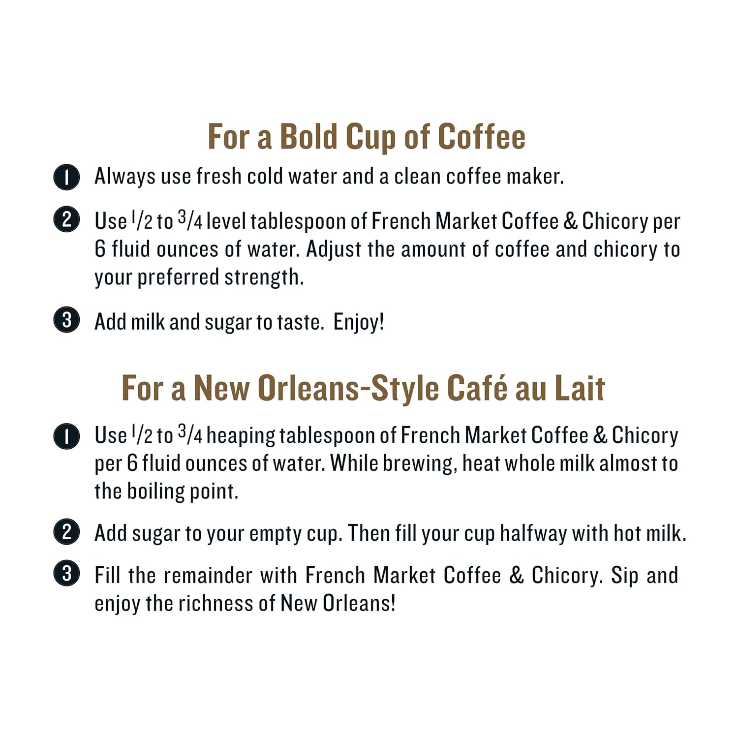 - Medium-Dark Roast Ground Coffee: Strong drip, remarkably smooth sip; 100% Arabica coffee beans blended with imported French chicory for a caramelized sweetness and smooth finish