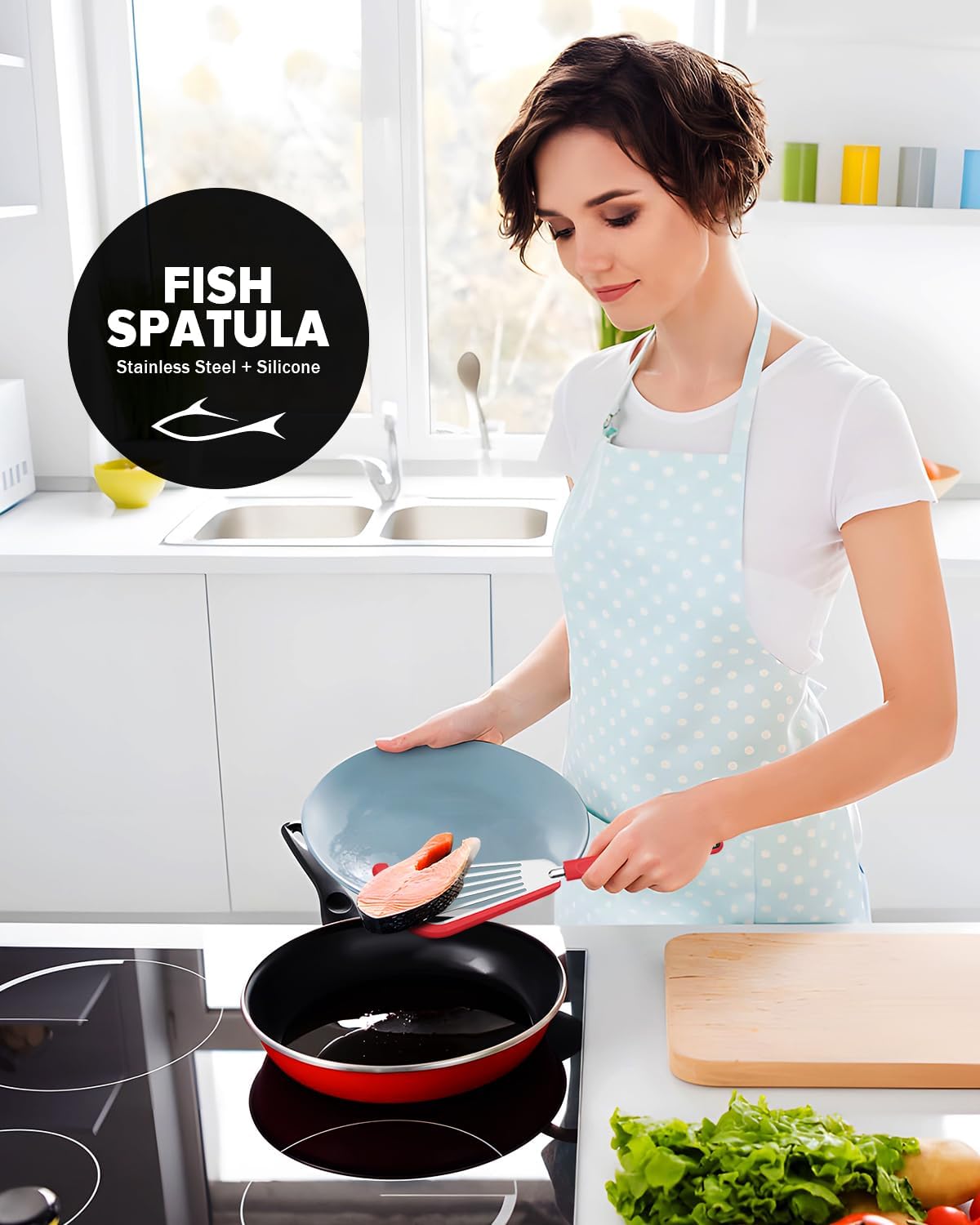 - [Multifunctional Fish Spatula]Spatulas with slotted design, easy to filter the oil out when frying foods, perfect for cooking fish, fillets, steaks, seafood, egg, dumplings, meat and more. Easy used with frying, baking, lifting, turning, or transferring. Enjoy the wonderful process of cooking delicacy with cooking spatulas.