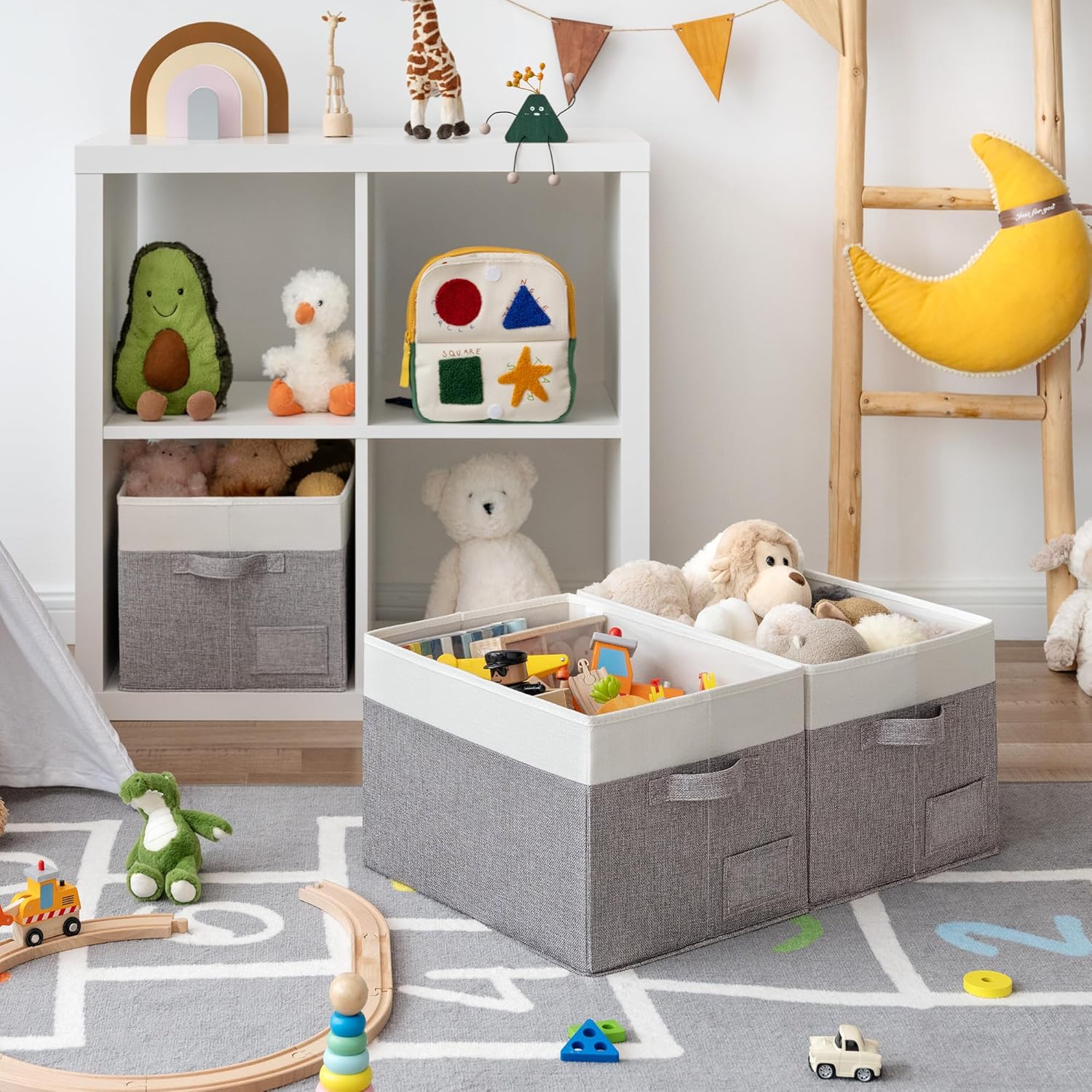• Eco-Friendly Material - Made of textured linen-like fabric, breathable and wear-resistant, without irritating odor. Fabric boxes come in sets of 3, each measuring 15¼"L x 11¾"W x 10½"H.