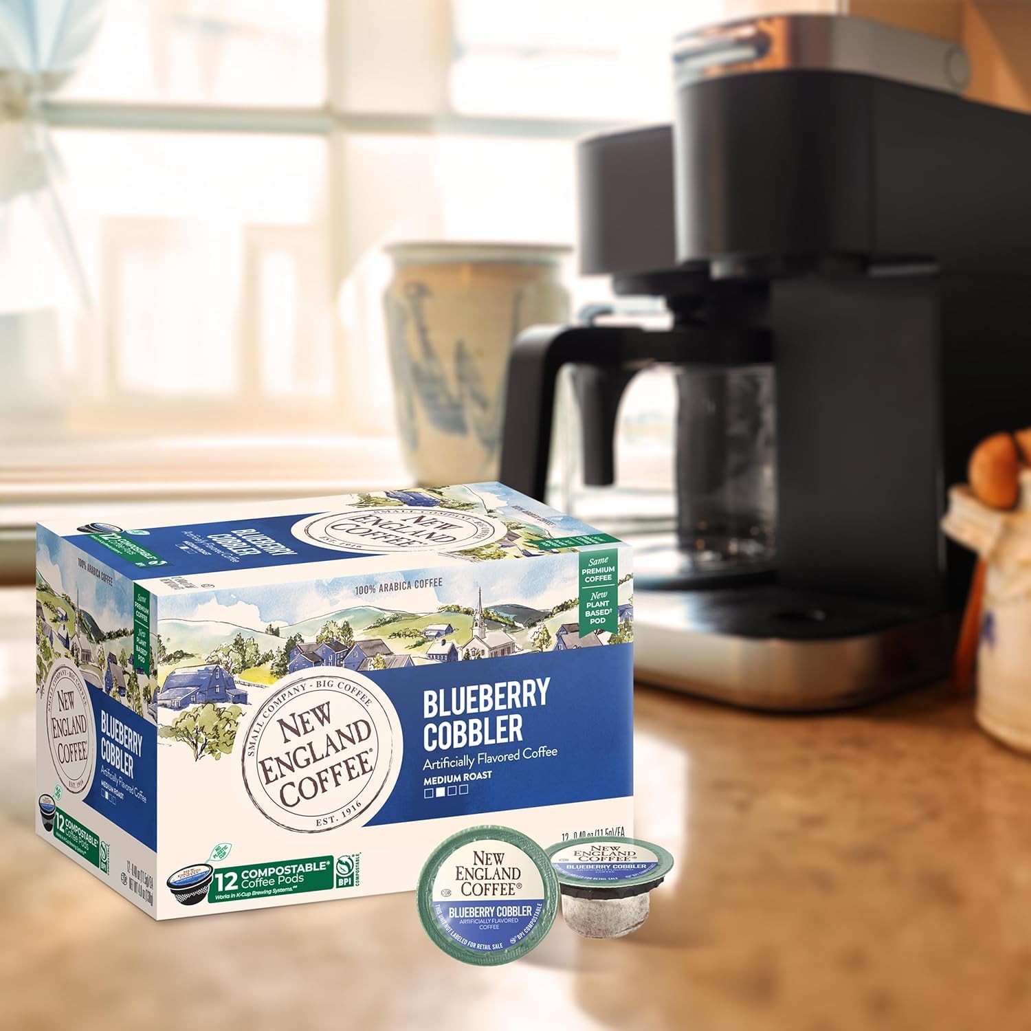 - New England Coffee K-Cup Pod Variety Pack: Includes 1 (12ct) Box of Blueberry Cobbler, 1 (12ct) Box of French Vanilla, 1 (12ct) Box of Butter Pecan