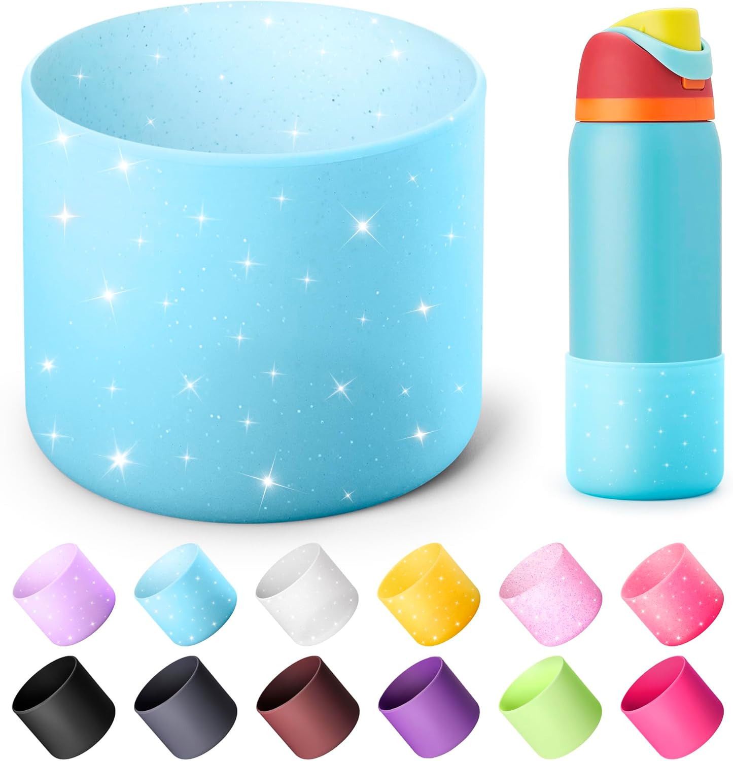 Silicone Boot for Owala 32 oz Bottle, Anti-Slip Protective Sleeve for Owala Twist & FreeSip & Flip Insulated Bottle, Boot Bottom Base (Glitter Blue)