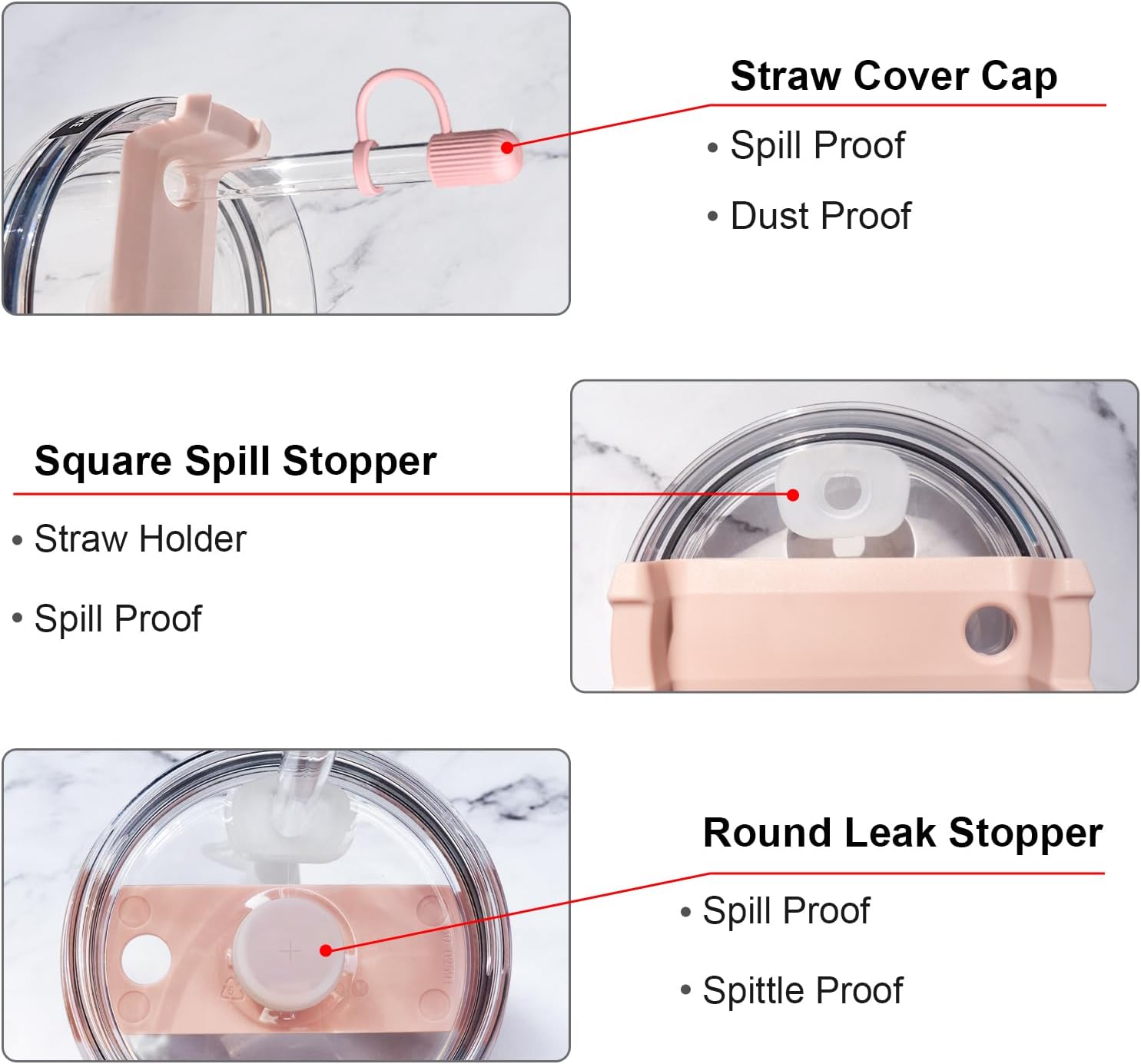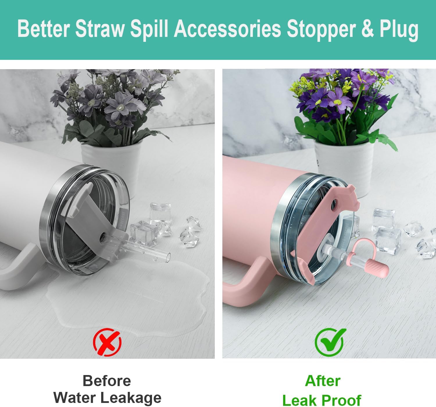 - Leak-proof & Dust: Spill stoppers set can help you prevents the straw from being contaminated by dust and spittle in the air, and also prevents mosquitoes from entering the water cup, keeps the straw and cup hygienic.