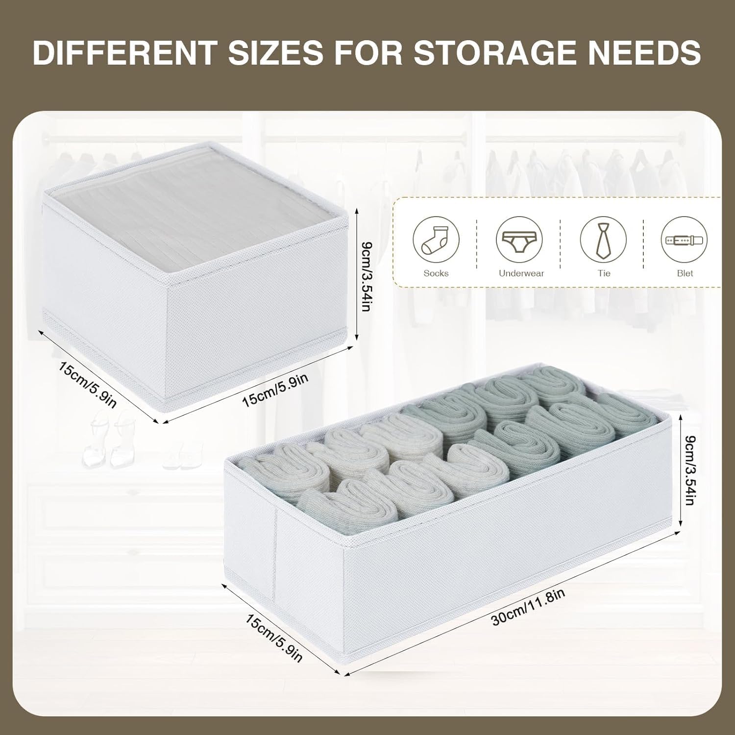 - [Multi-Size Organizer] The dresser organizers and storage choose 2 different sizes to match, you can store a variety of items, greatly improve your daily use. Medium underwear storage is 30*15*9cm (11.8*5.9*3.54") and small organizer drawers is 15*15*9cm (5.9*5.9*3.54")